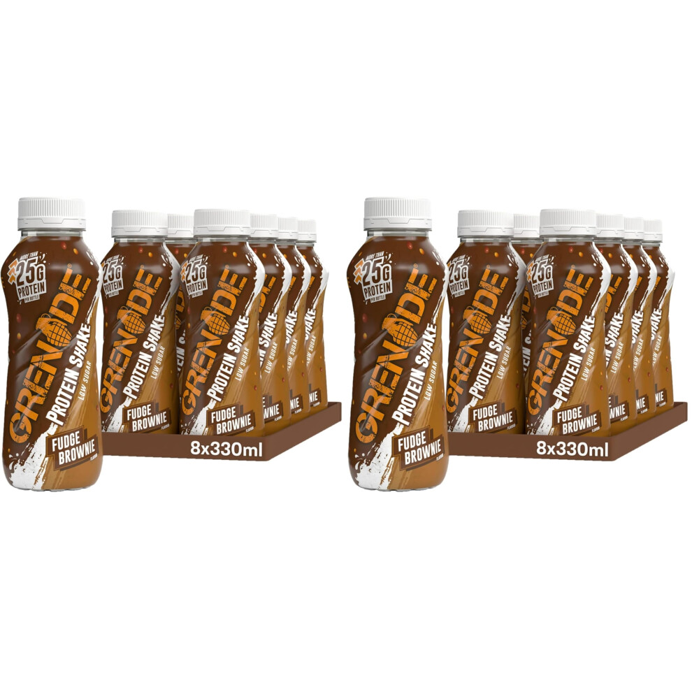 Grenade Fudge Brownie High Protein Shake, 8 x 330 ml - Ready to Drink Milk Protein Shakes with over 24 g Protein per Bottle (Pack of 2)