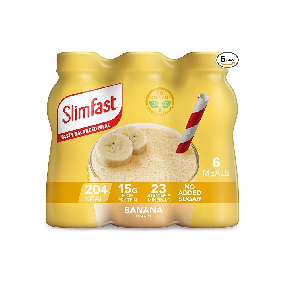 SlimFast Ready To Drink Shake Meal Shakes for Weight Loss Diet Protein Vitamins Minerals NoSugar BananaFlavour Multipack 6 x 325 ml Packaging May Vary