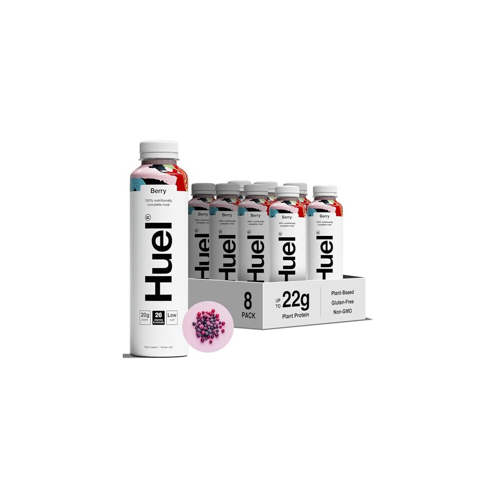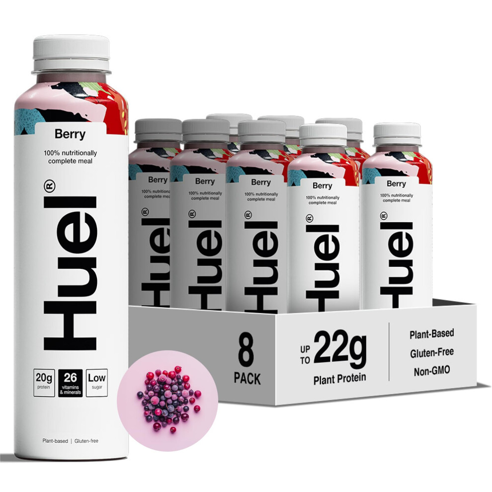 Huel Ready-to-drink Meal, Berry Protein Drink, 8 x 500ml Bottles, Protein Shakes, Pre-Portioned Meal, 20g of Protein per Bottle, Rich in Essential Vitamins, Minerals and Fibre Meal Replacement Shake