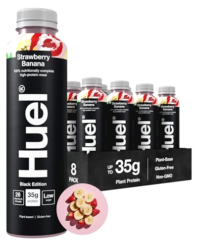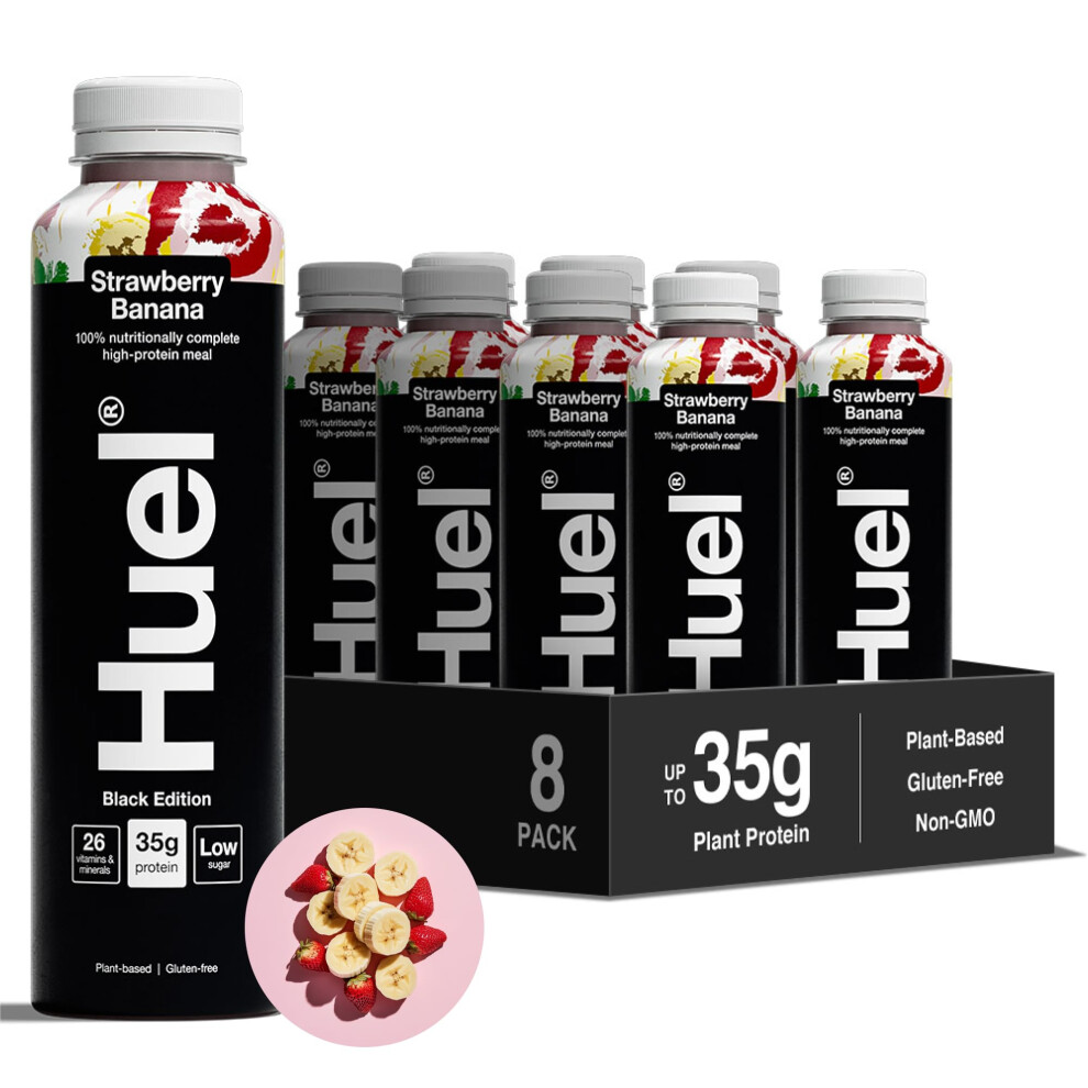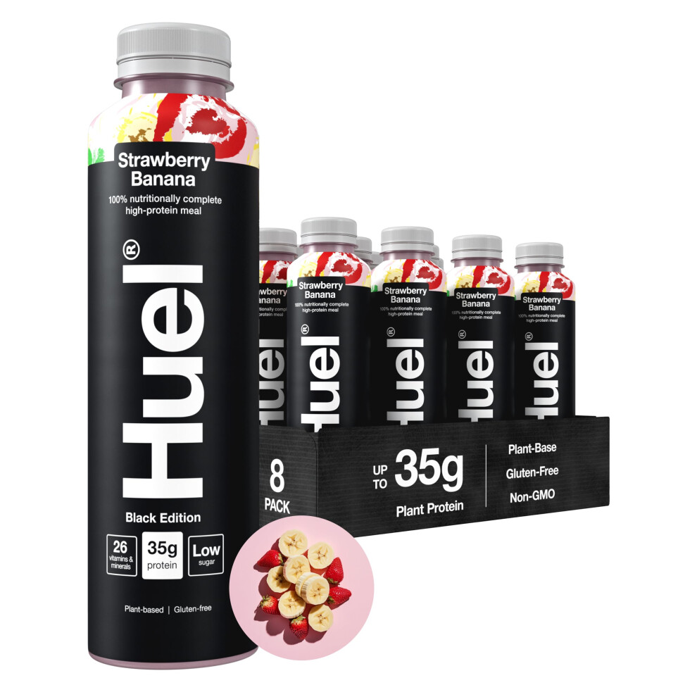 Huel Black Edition Ready-to-drink, 8 x 500ml Bottles, Protein Shakes, Strawberry Banana Flavour, High Protein Drink, 35g Protein Per Bottle, Rich in Vitamin D, Fatty Acids, Calcium, Ready Meals