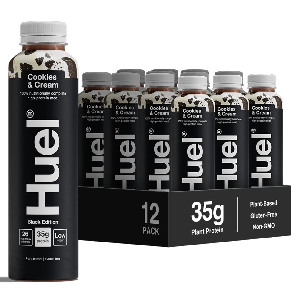Huel Black Edition Ready-to-drink, 12 x 500ml Bottles, Protein Shakes, Cookies & Cream Flavour, High Protein Drink, 35g Protein Per Bottle,