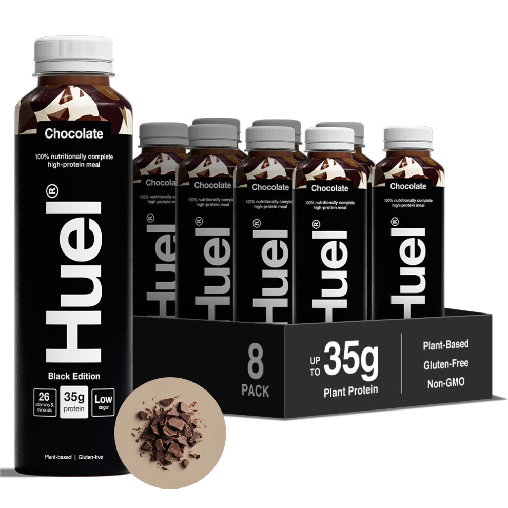 Huel Black Edition Ready-to-drink, 8 x 500ml Bottles, Protein Shakes, Chocolate Flavour, High Protein Drink, 35g Protein Per Bottle, Rich in Vitamin D, Fatty Acids, Calcium, Ready Meals