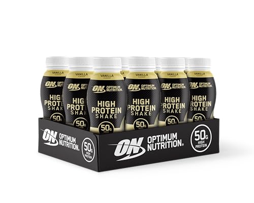 Optimum Nutrition High Protein Shake Bottles, Ready to Drink Healthy Snacks, No Added sugars, Low Fat, Vanilla Flavour, 12x500ml, Packaging May Vary