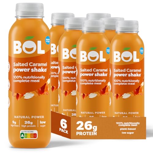 BOL Salted Caramel Power Shake — Ready-to-drink Nutritionally Complete Meal (300kcal) | 27g High Protein Shake Bottle | Low Sugar, Plant-based, Low Calorie Meal Replacement Shakes (410ml x 6 bottles)