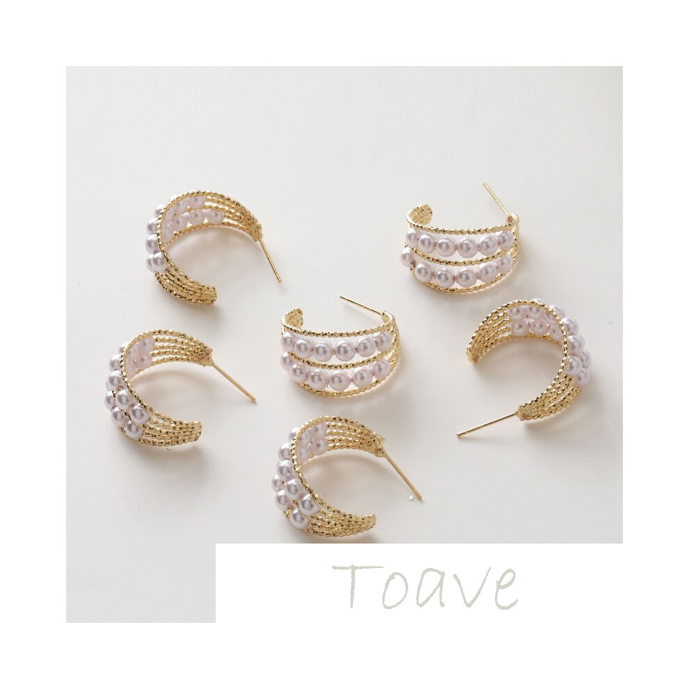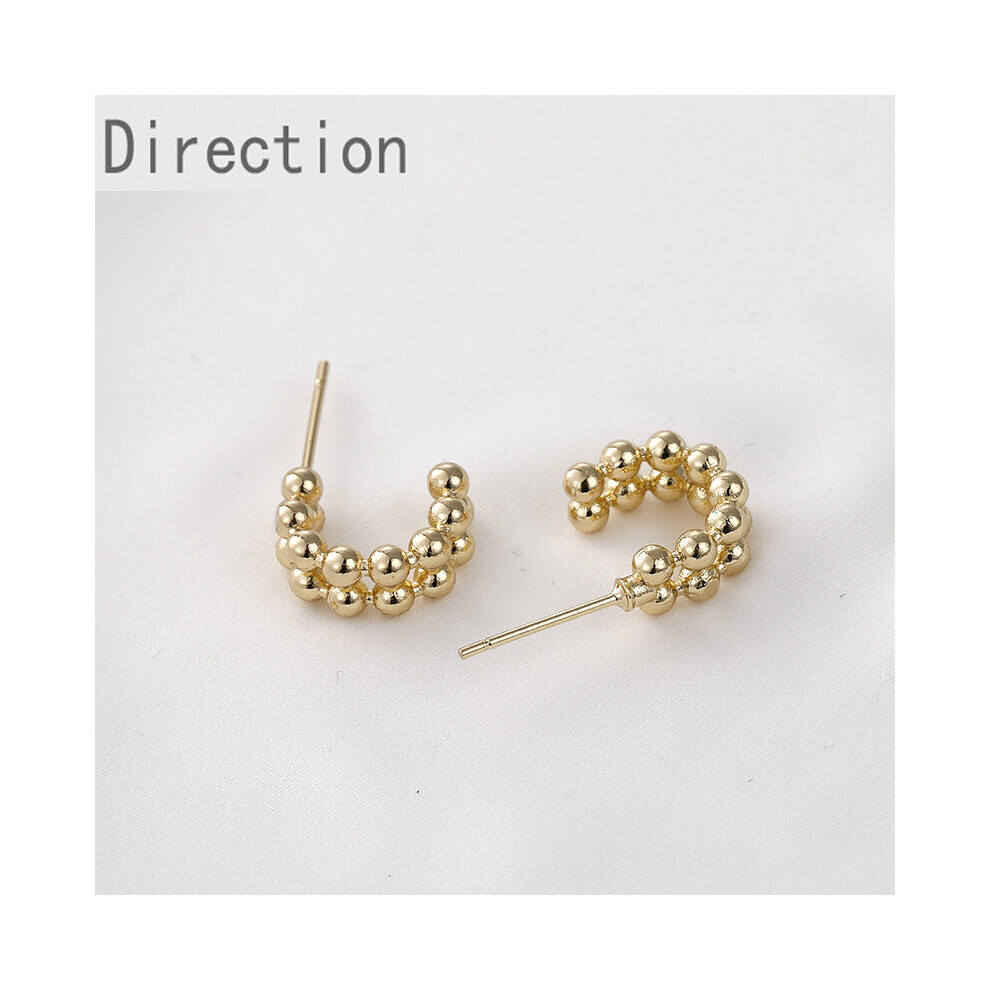 Gold-plated copper plated real C-shaped 2 rows of pearls silver needle earrings diy earrings material accessories