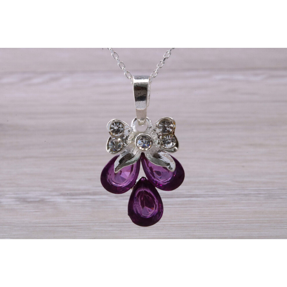 Real Amethyst and C Z set Dressy Sterling Silver Necklace