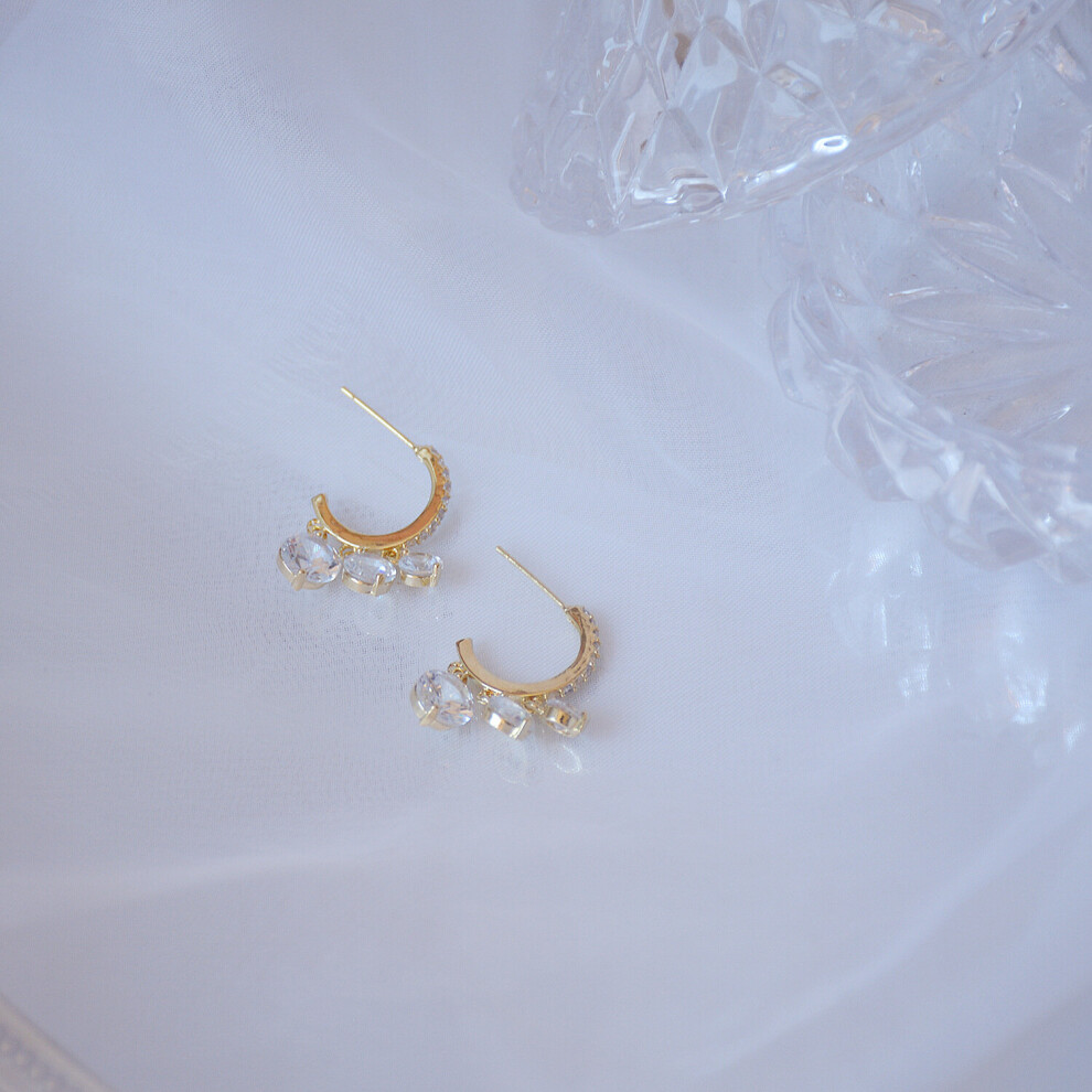 14k Real Jewelry Crystal C-shaped Stud Earrings for Woman Holiday Party Zircon Earring