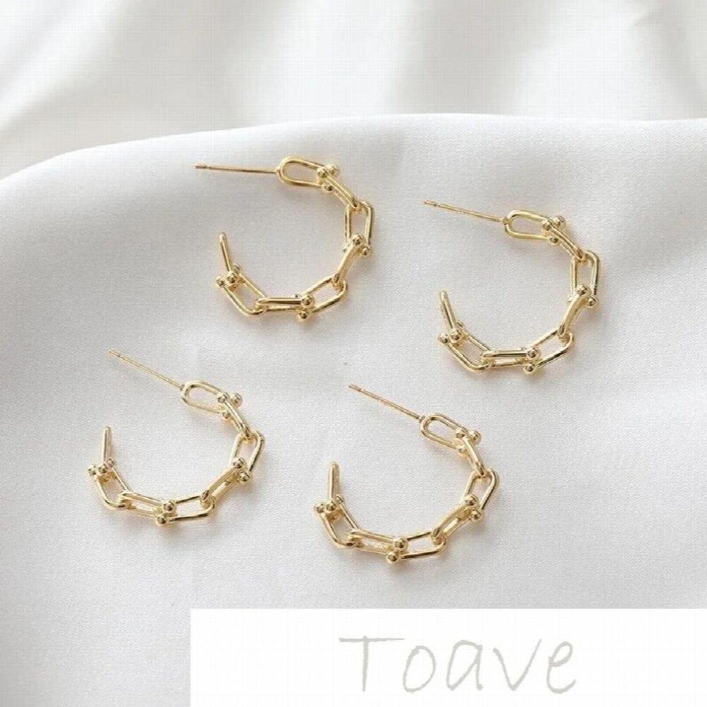 Gold-plated copper plated real matt C-shaped chain silver needle earrings girl silver needle diy earrings
