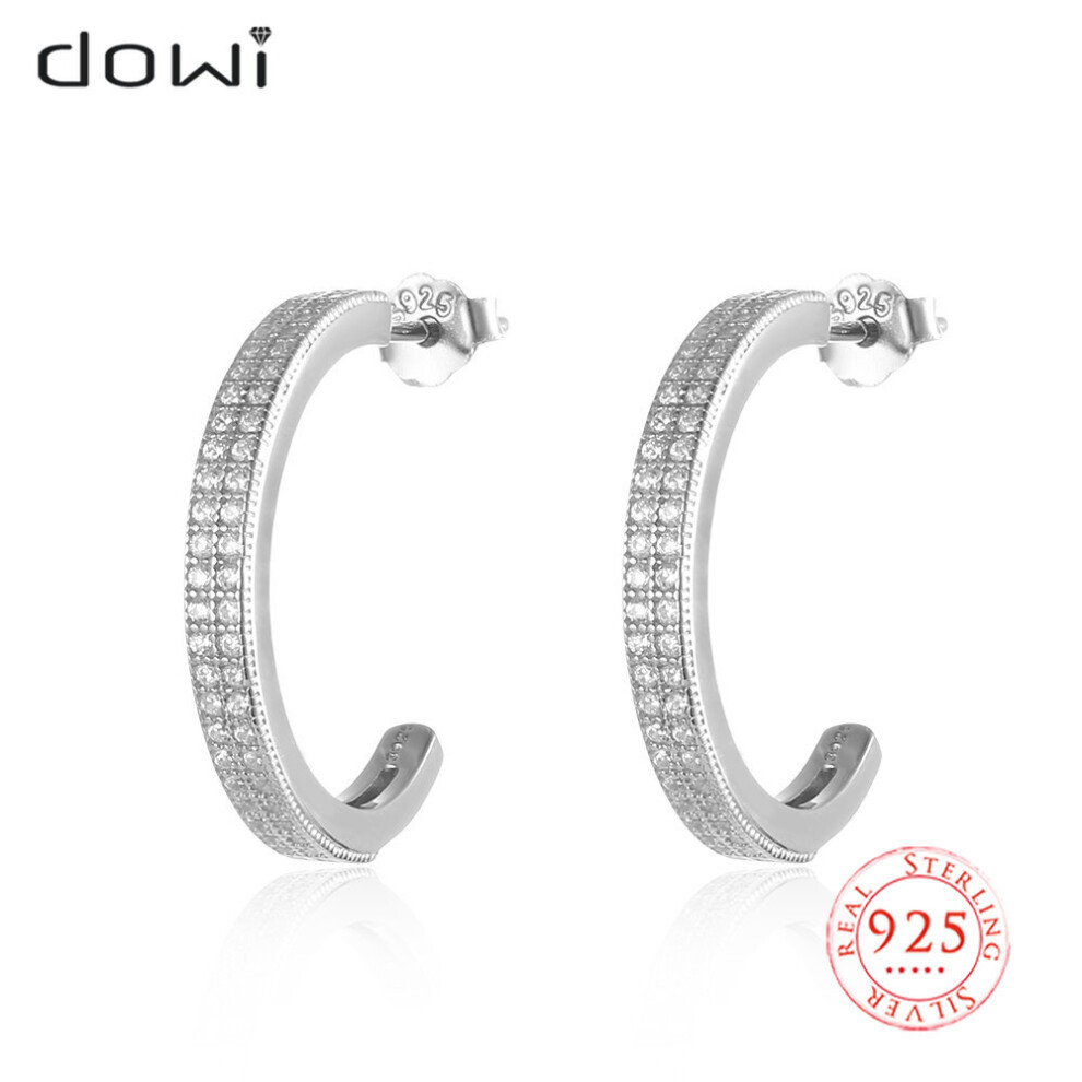 Inlaid Zircon Real 925 Silver C-Shaped Earrings for Women Personality Earrings Wedding Jewelry Birthday