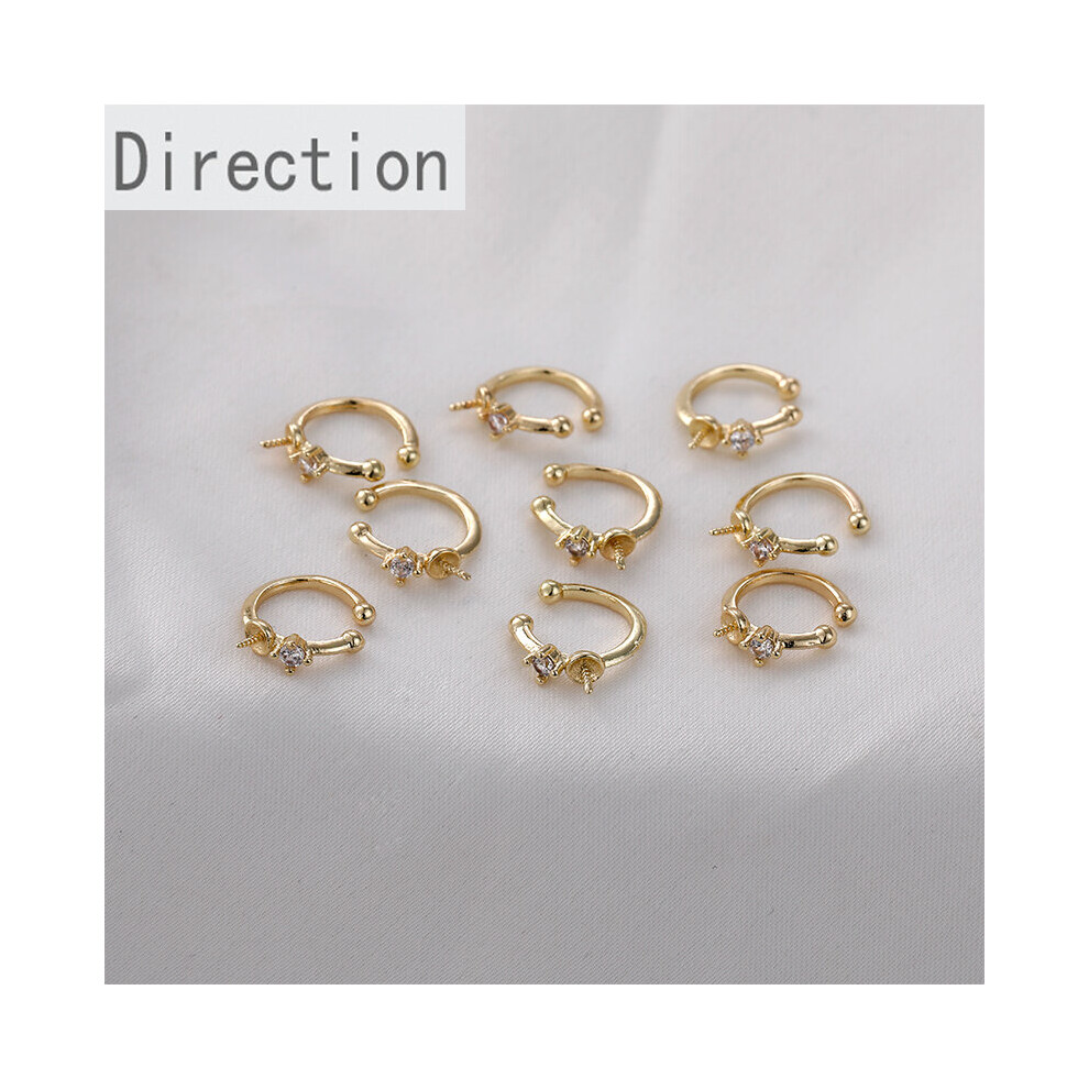 14k Gold-plated Real Adjustable C-shaped Inlaid Zircon Ear Clip With Bowl Drag Pearl Ear Bone Clip Diy Earring Material