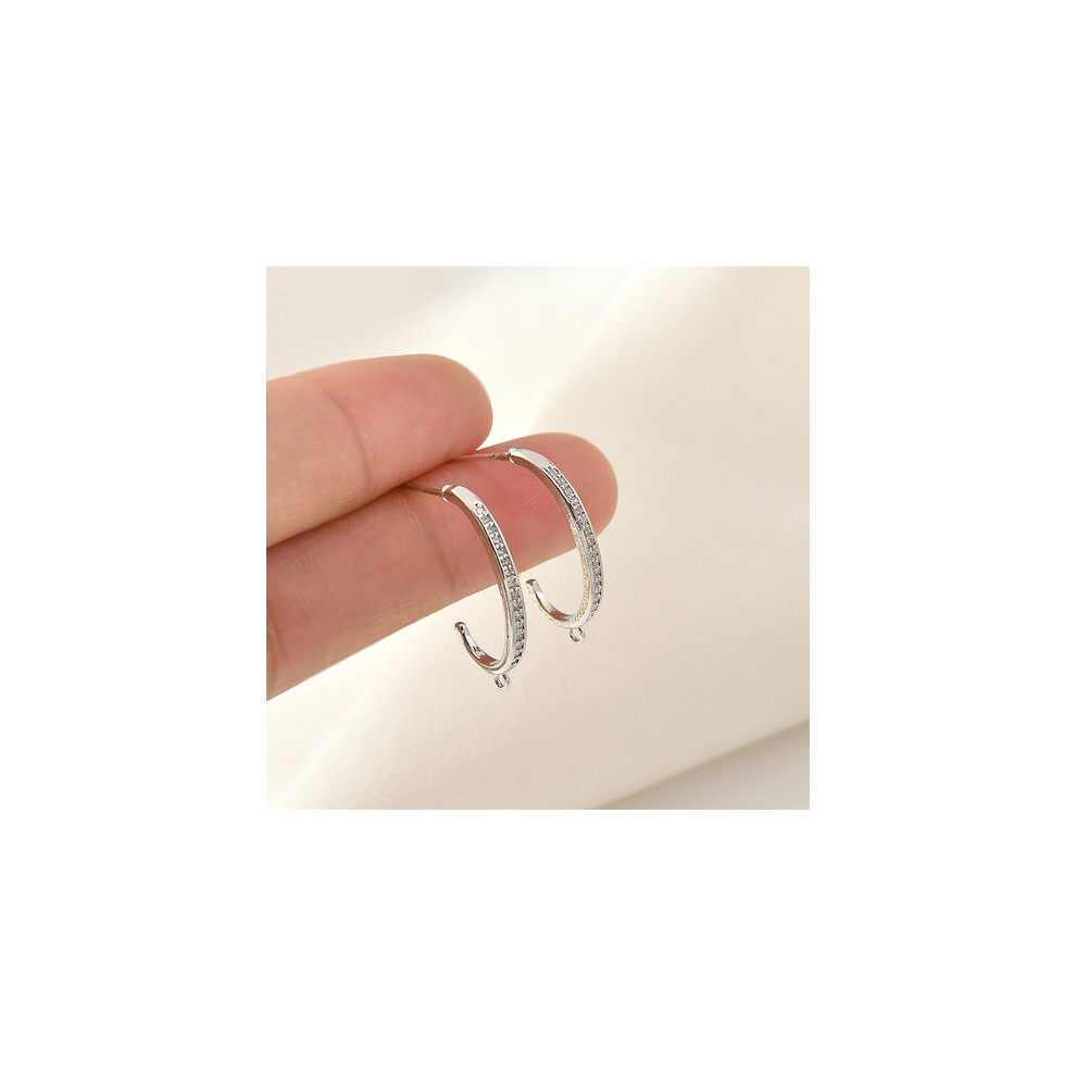 Maintains Copper Plated 14K Real and Versatile C- Shaped Zircon 925 Silver Needle Ear Stud DIY Accessories2pcs