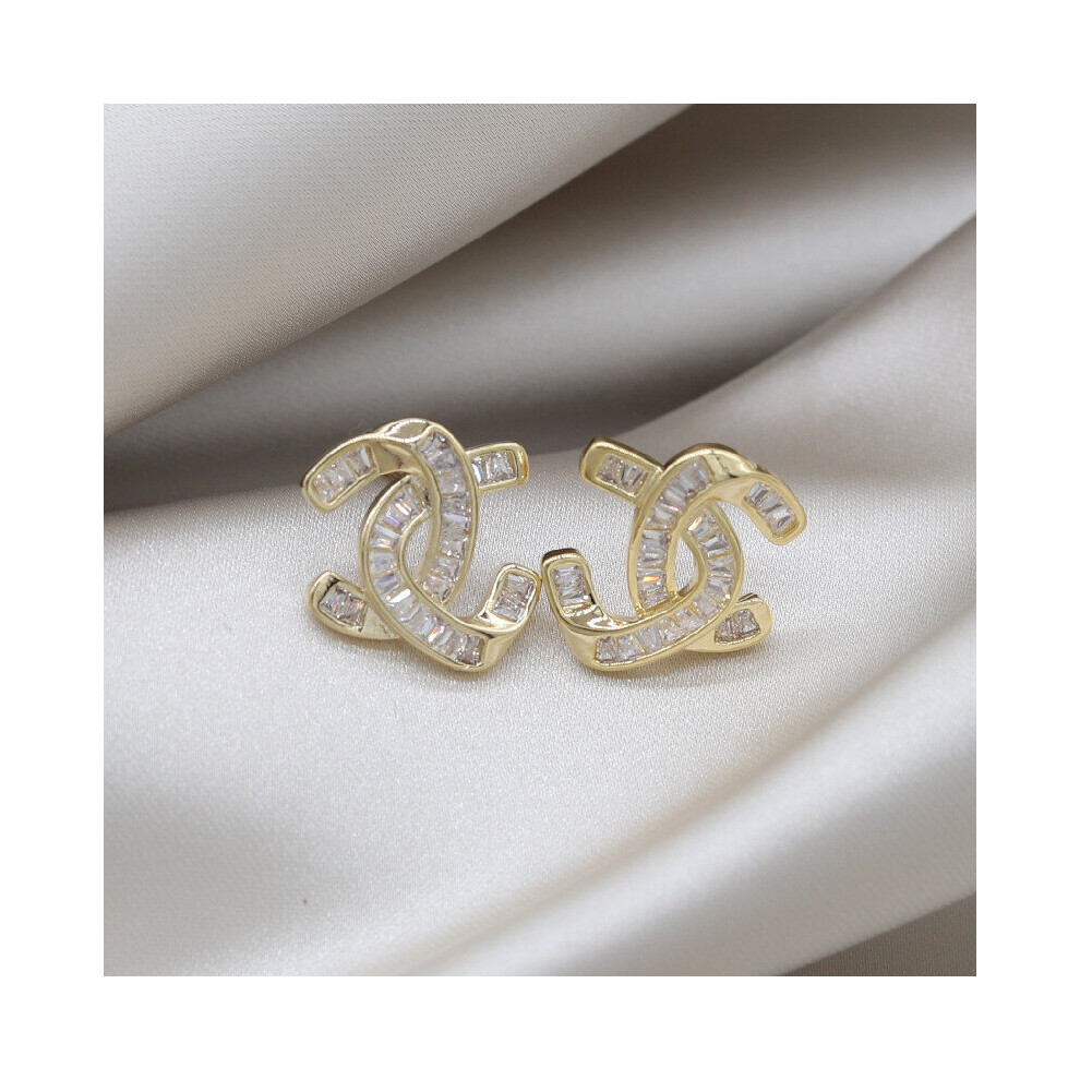 Korea Jewelry 14K Real Plated Letter C Cross Stud Earrings Women's Gala Party Earrings