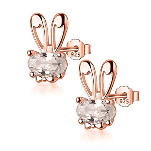 JXHSWDG Solid Real Jewelry Cute Little Rabbit Cz Stud Earring present for Girls youth Lady Jewelry, F167-rose