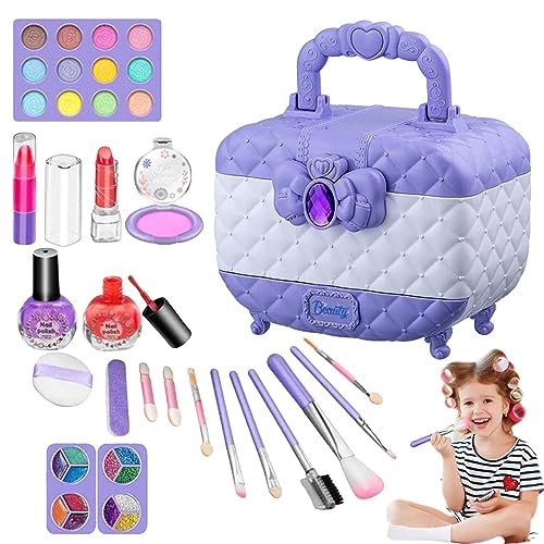 Kids Washable Makeup Girls Toys - Real Makeup Kit for Little Girls, Kid Make up Set for Toddlers Children Princess Dress Up Christmas Birthday Gifts Toys for 3 4 5 6 7 8 9 10 11 12 Year Old Girls