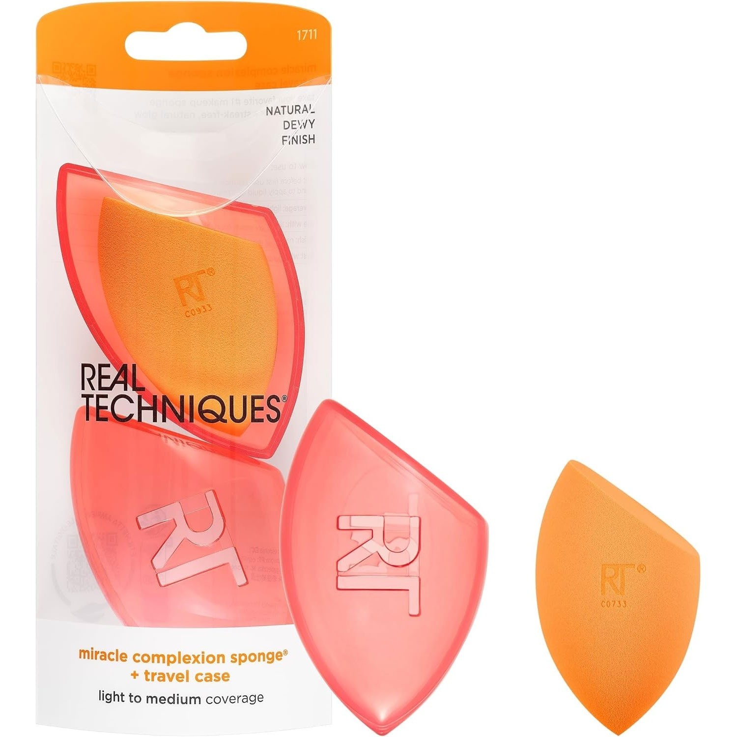 Real Techniques Miracle Complexion Sponge Makeup Blender + Travel Case Orange