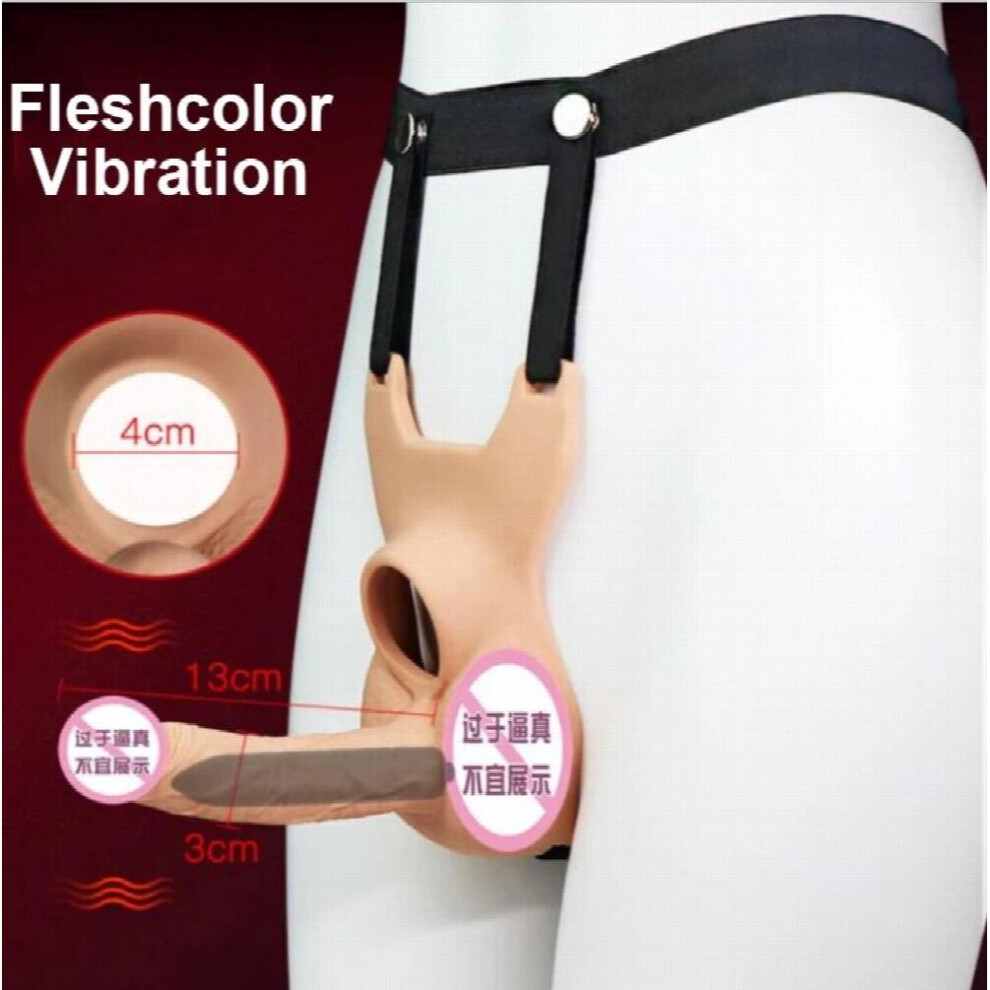 Realistic Hollow Strap On With Vibrator 8 Inch