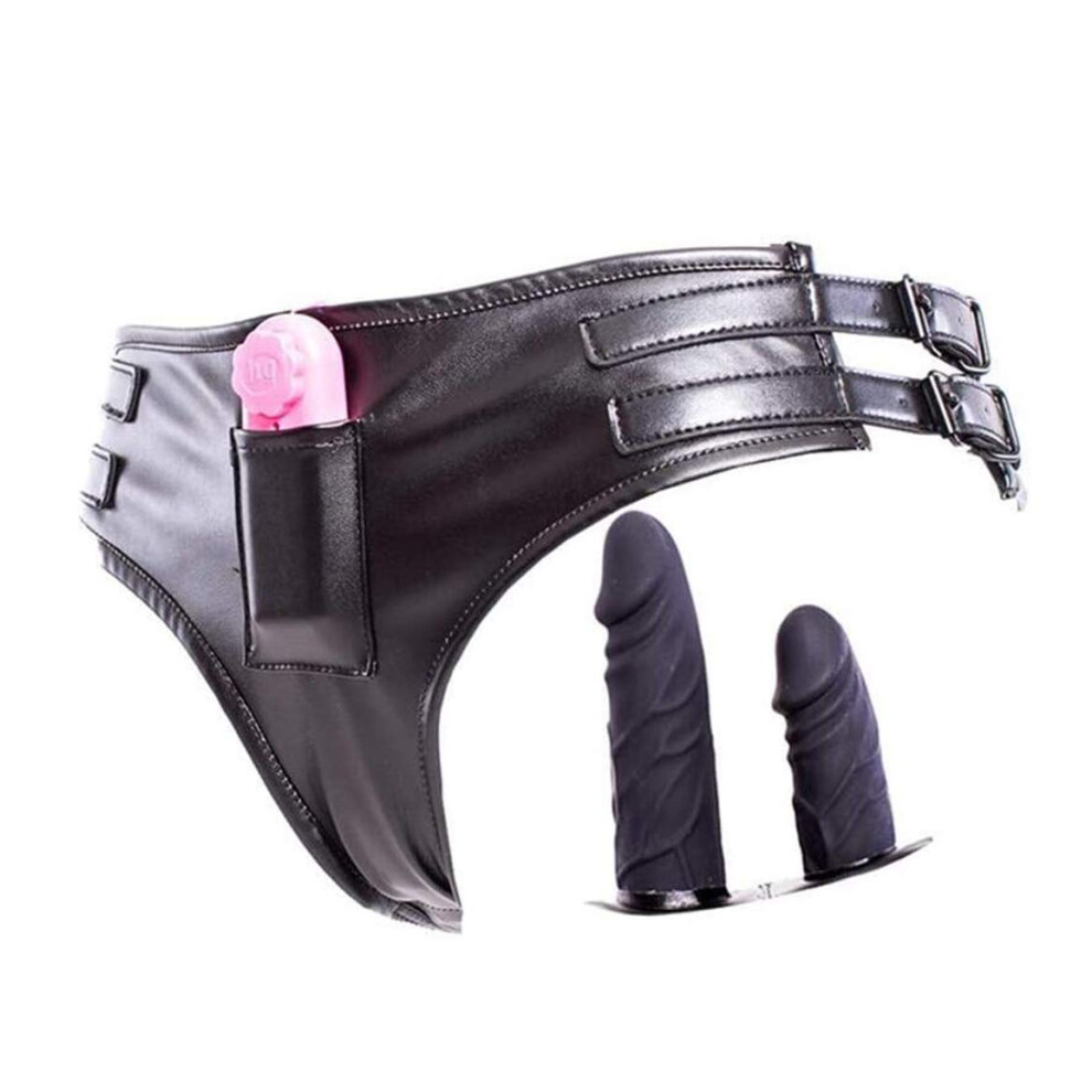 Lesbian Strap On Dildo with Leather Chastity Belt, Double Realistic Vibrator for Couples Play