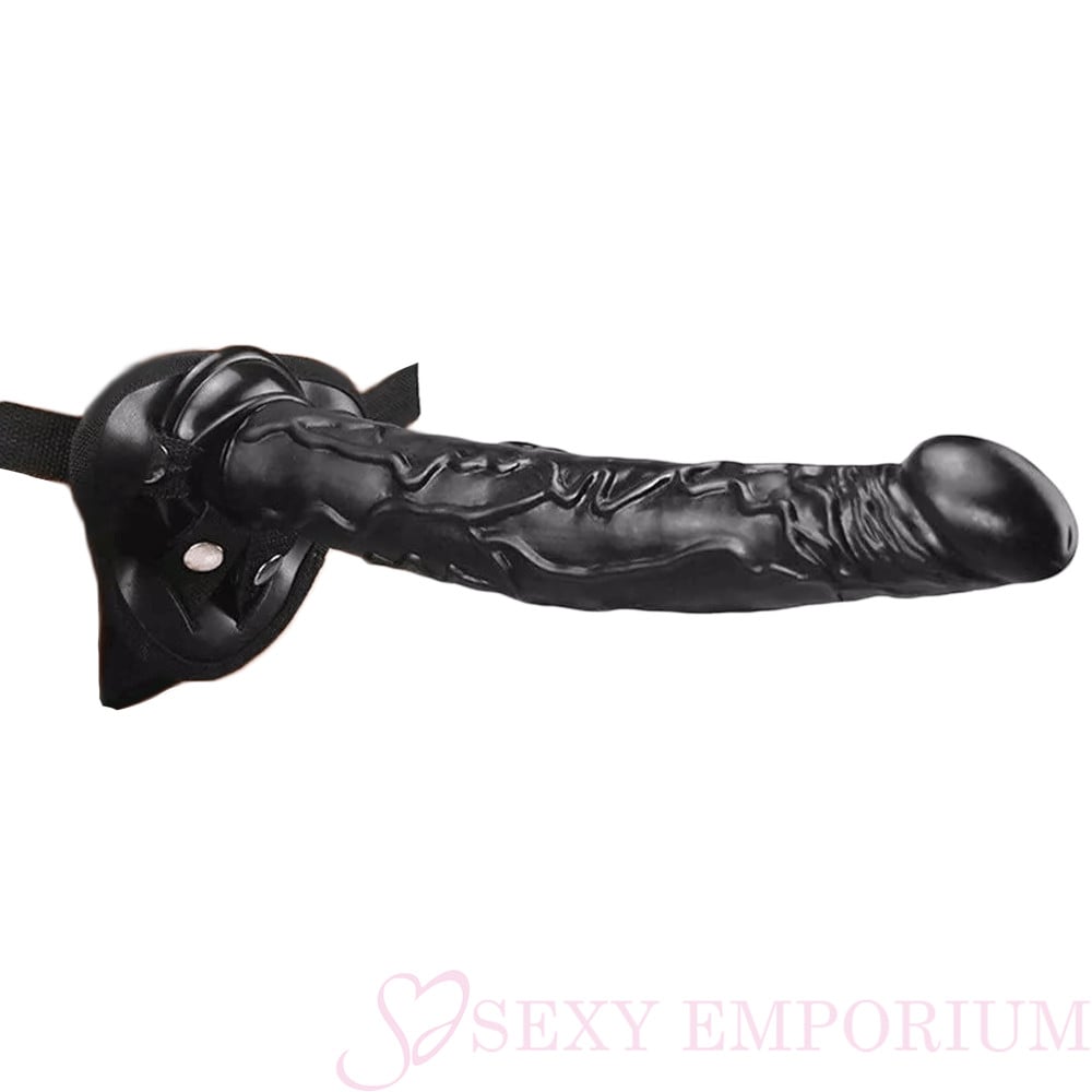 Strap On 10 INCH Realistic BLACK Dildo with BIG HEAD & Balls