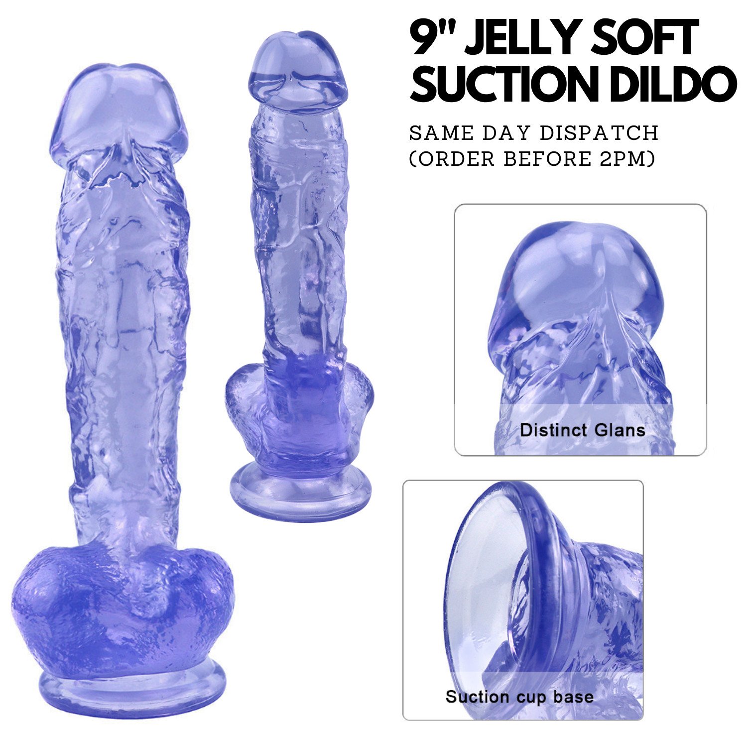Big Dildo Sex Toy 10 Inch Strap On Jelly Feel Realistic Discreet Skin Safe Blue