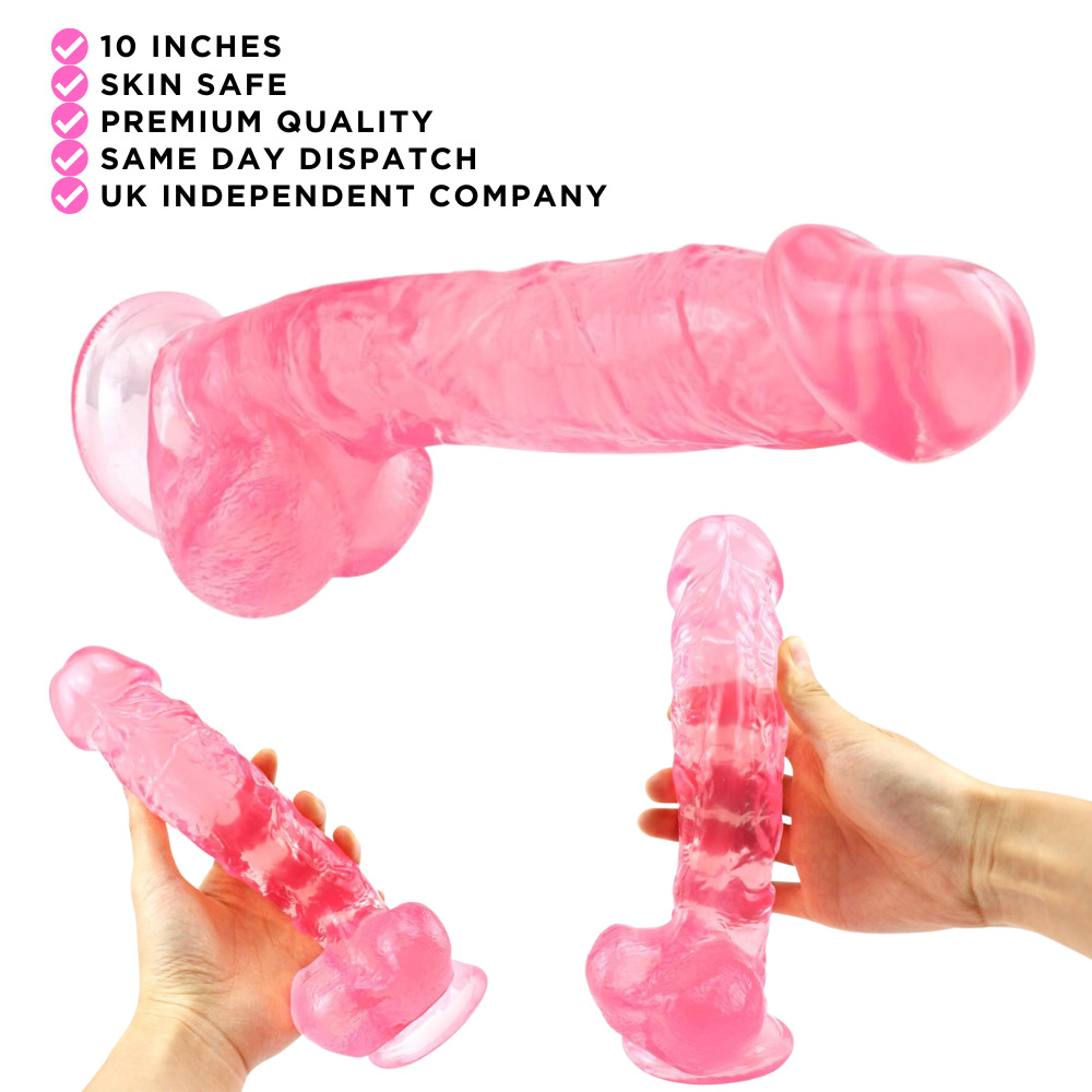 Big Dildo Sex Toy For Women 10 Inch Strap On Jelly Feel Realistic Skin Safe Pink