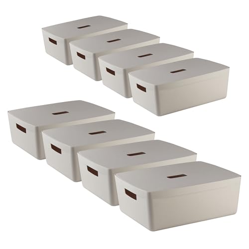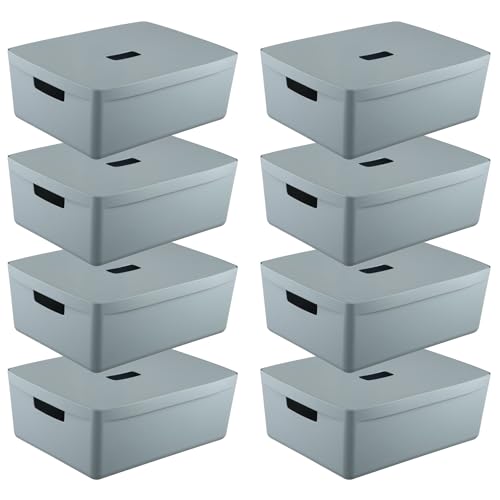 IDEA HOME Storage Boxes with Lids 8 Pieces - Plastic Storage Box - Storage Organiser - Really Useful Boxes for Storing Various Items in the Living Room, Bedroom or Bathroom, 19L