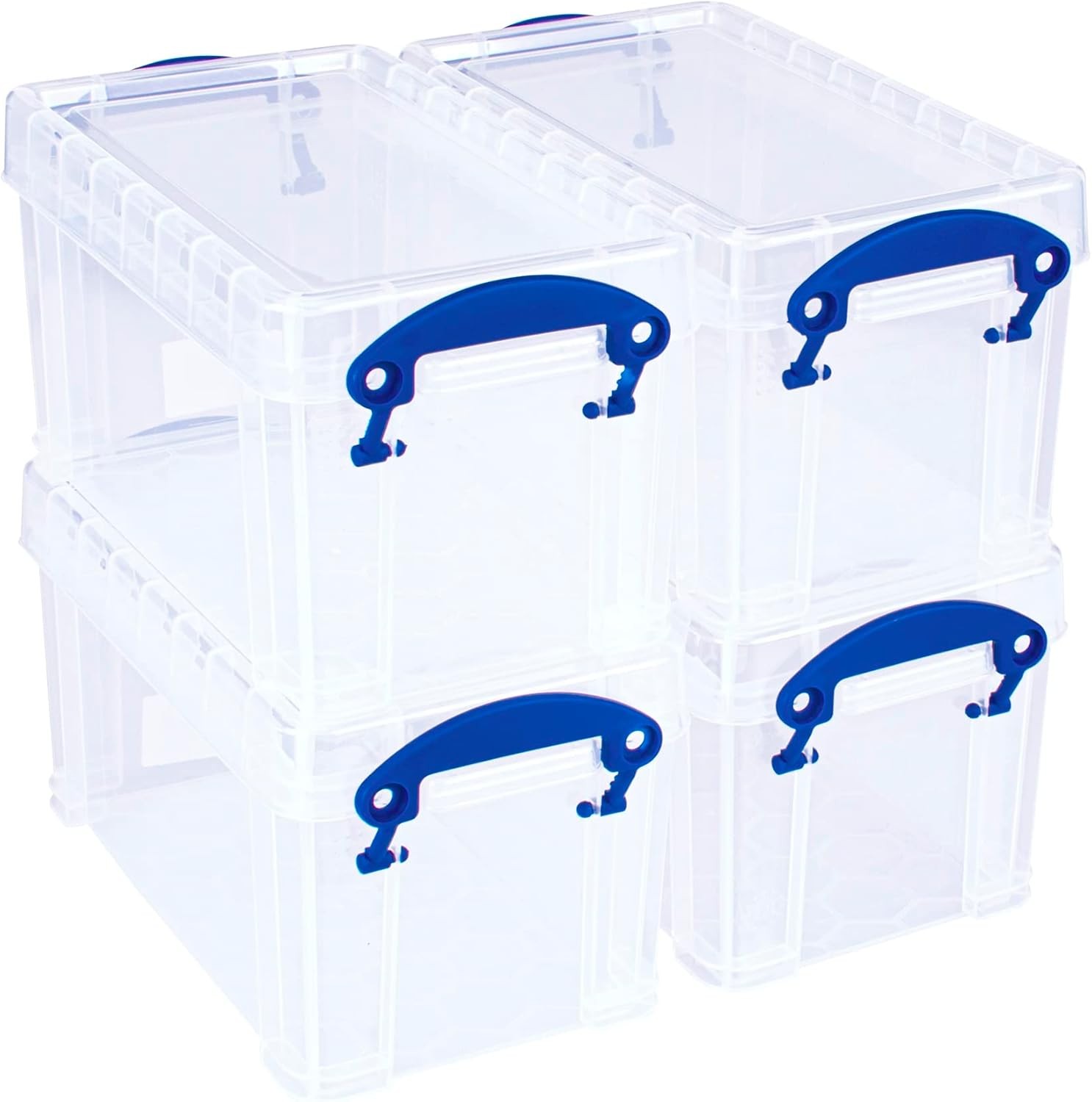 Really Useful Plastic Storage Box 0.7 Litre Clear (Pack of 4)