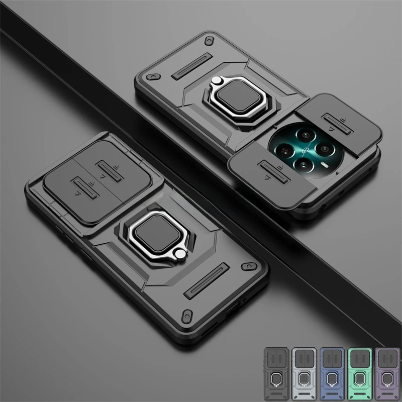 Lens Sliding Window Case For Realme 12 4g Case Realme 12 Pro Plus Cover Armor Shockproof Holder Ring Magnetic Protector