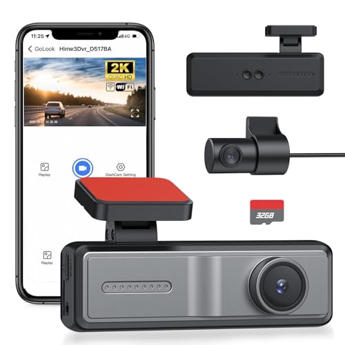 YGiTK Dash Cam Front and Rear Camera - 2K HD Front + 1080P Rear Dashcam, 32GB SD Card, Wi-Fi & App Control, Night Vision, Parking Mode, G-Sensor Loop Recording, 160°Wide Angle Include Acc Power Cable