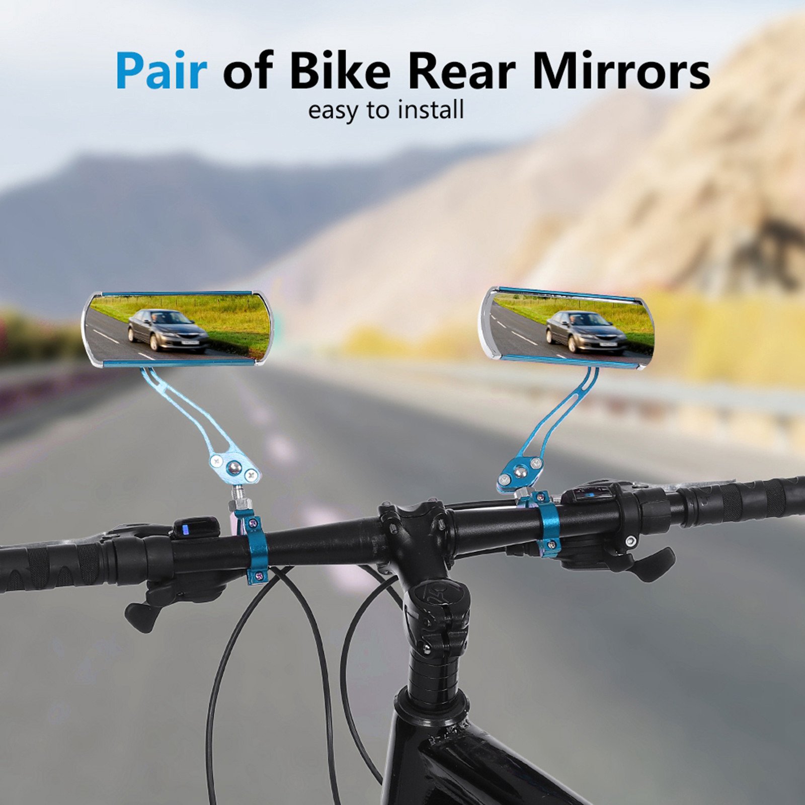 (Blue)1 Pair Bicycle Handlebar Rear Back View 360 Rotation Mirror For|