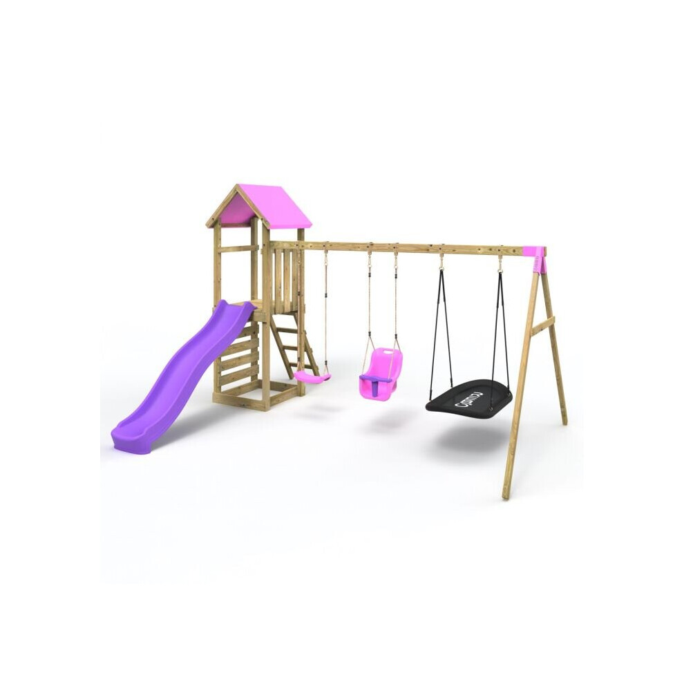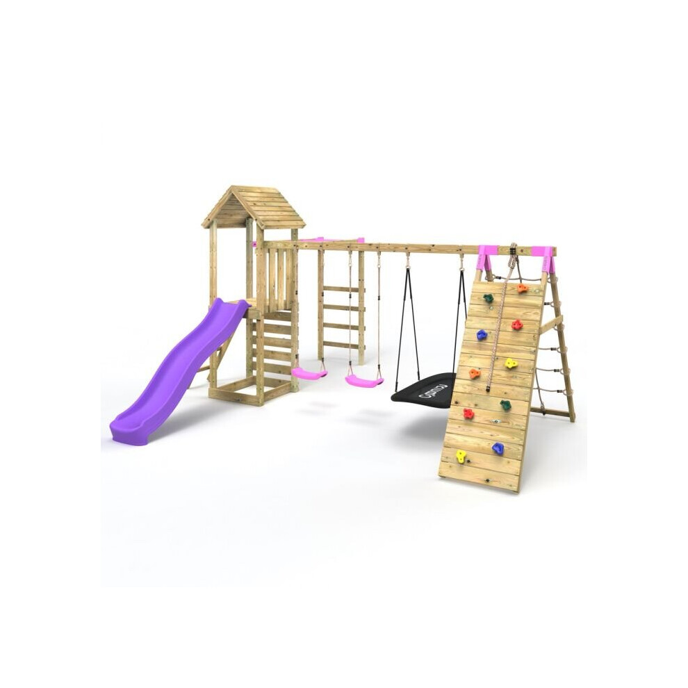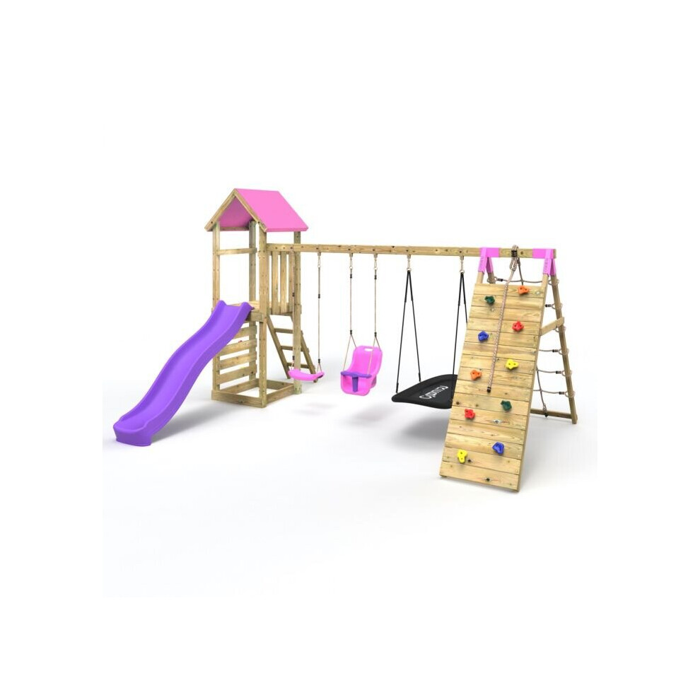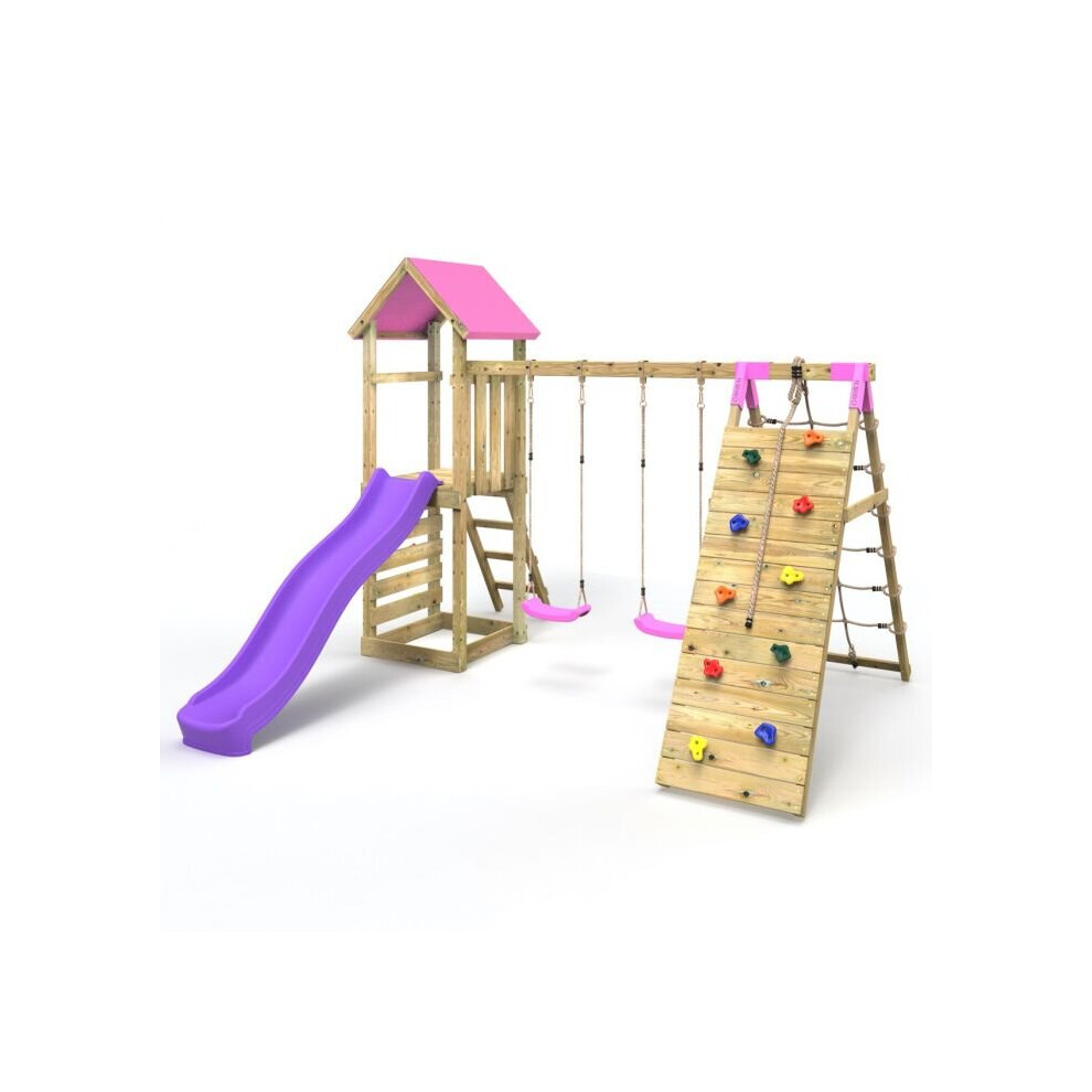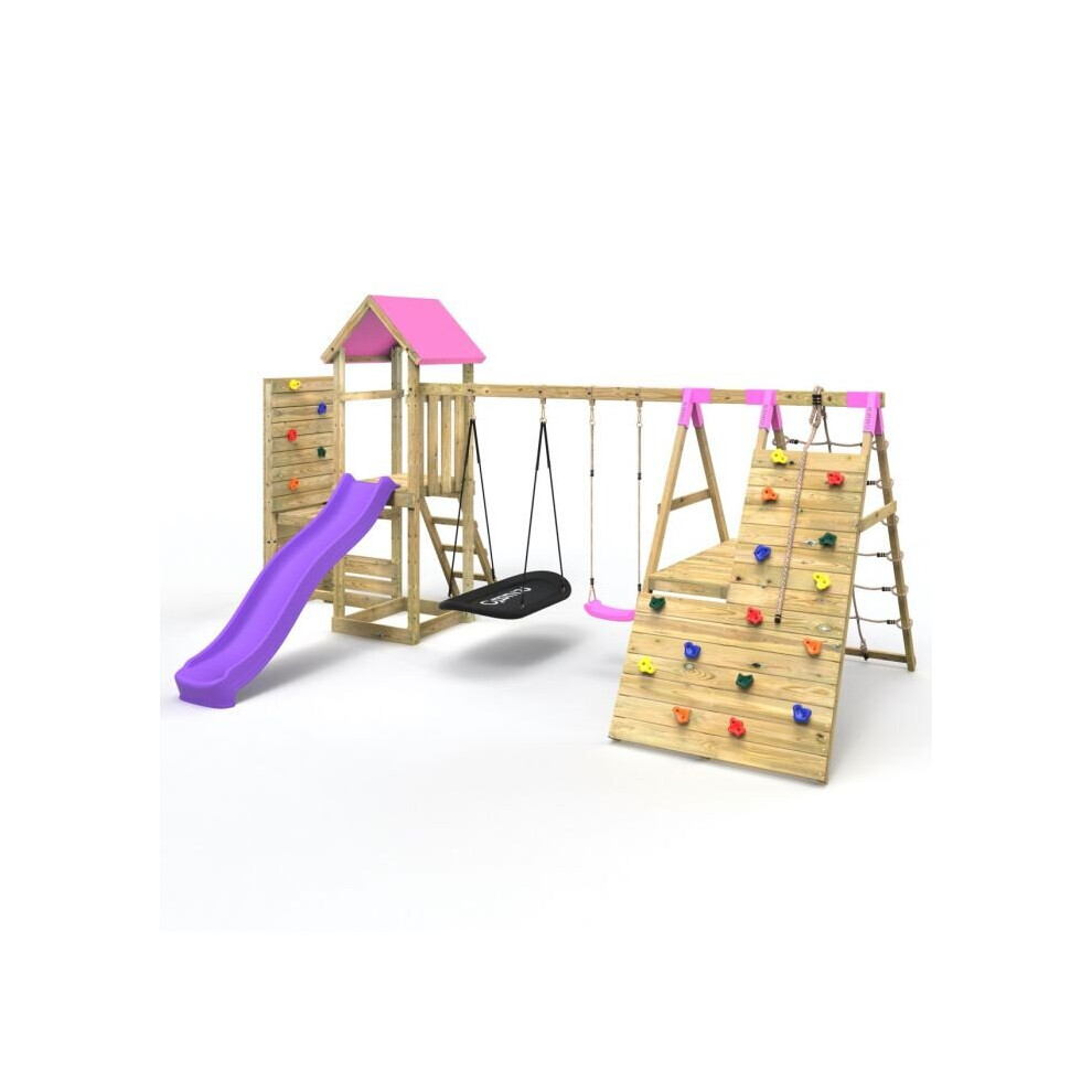 Rebo® Adventure Playset Wooden Climbing Frame, Swing Set and Slide - Rainier Pink | OutdoorToys | Kids' Outdoor Wooden Garden Play Equipment, Children's Jungle Gym