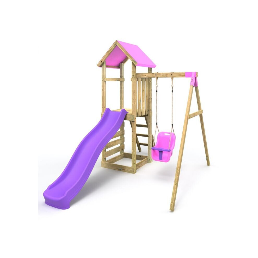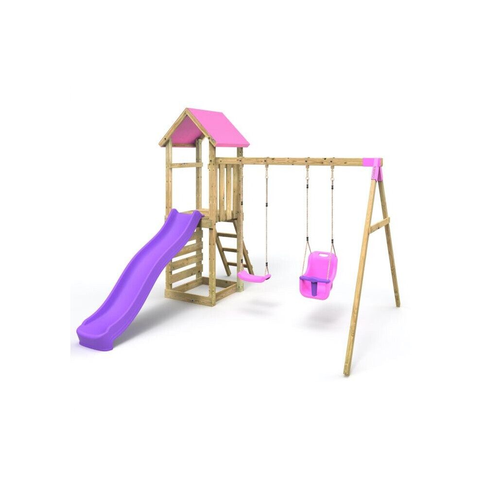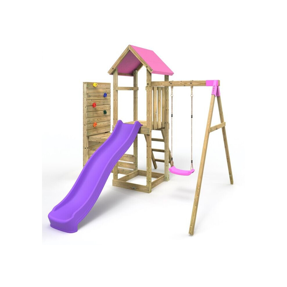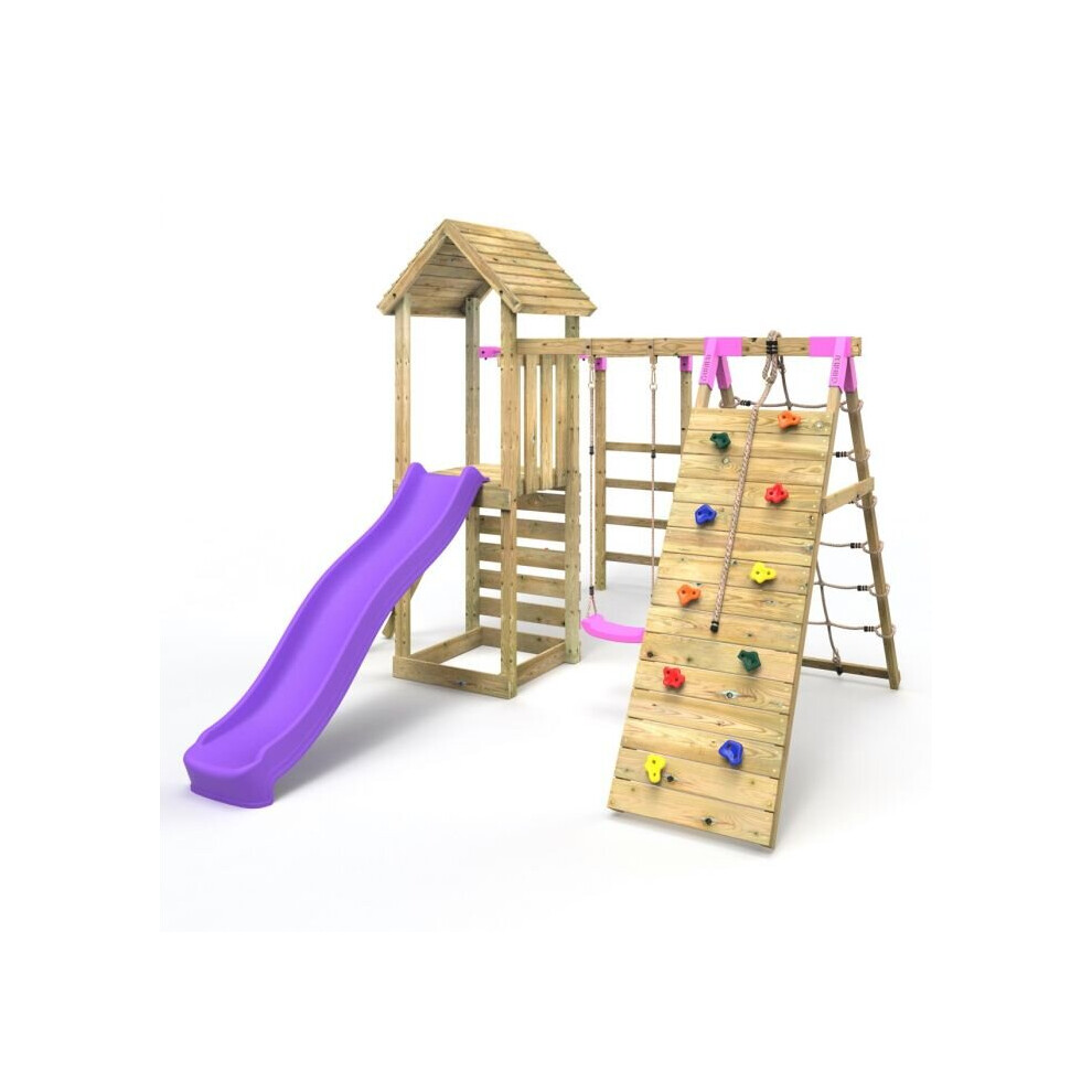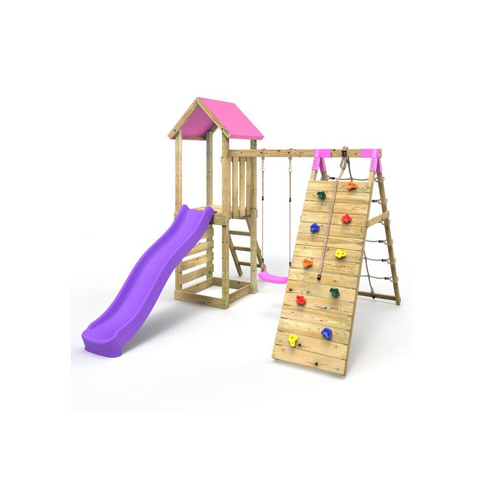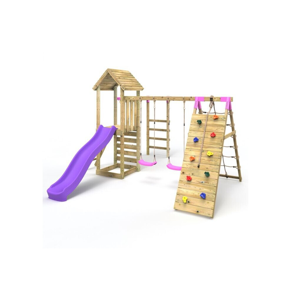 Rebo® Adventure Playset Wooden Climbing Frame, Swing Set and Slide - Rainier Pink | OutdoorToys | Kids' Outdoor Wooden Garden Play Equipment, Children's Jungle Gym
