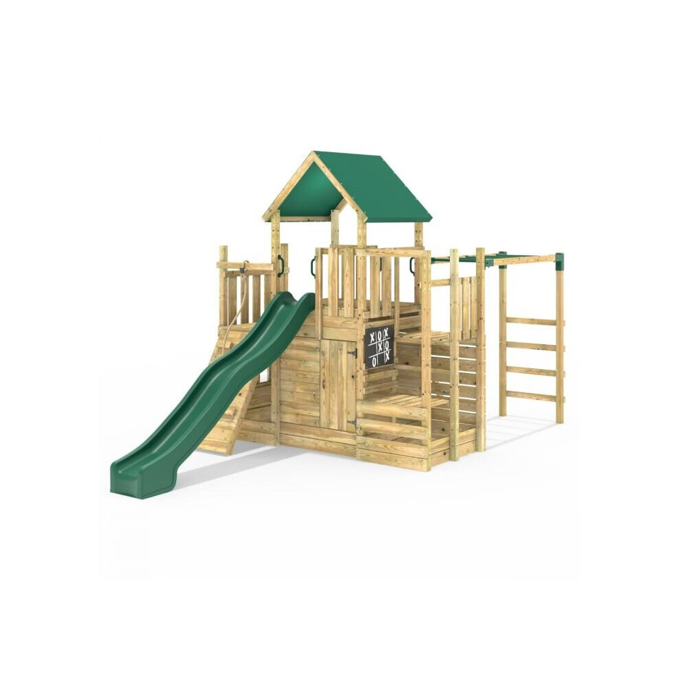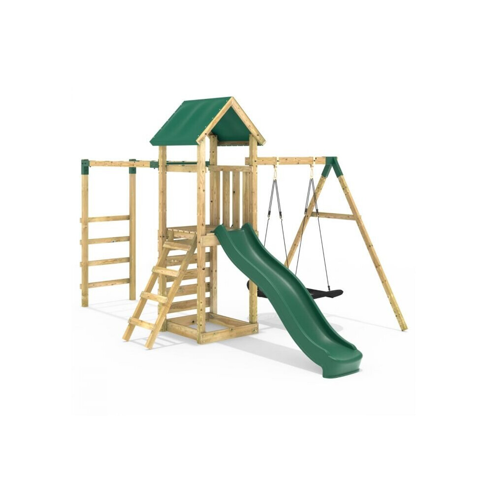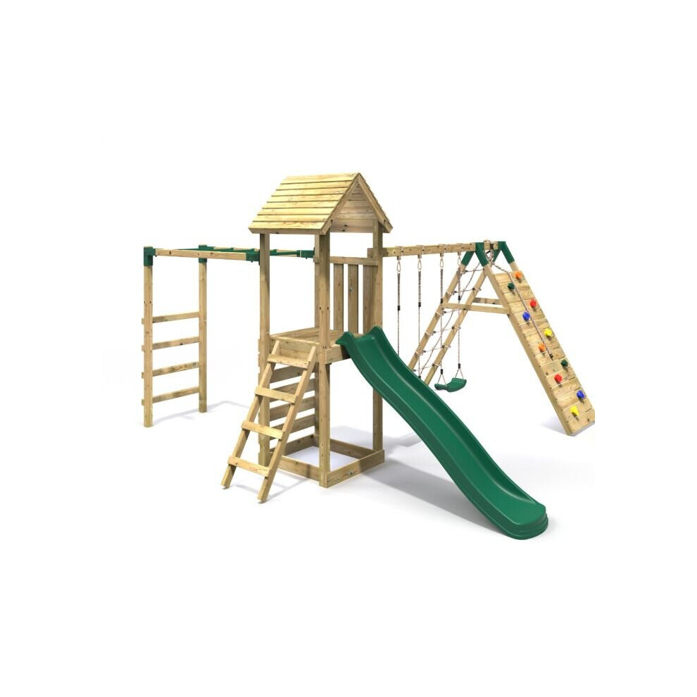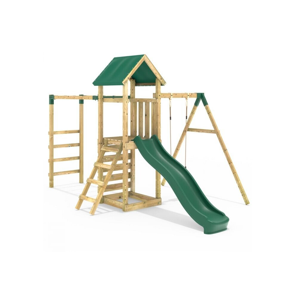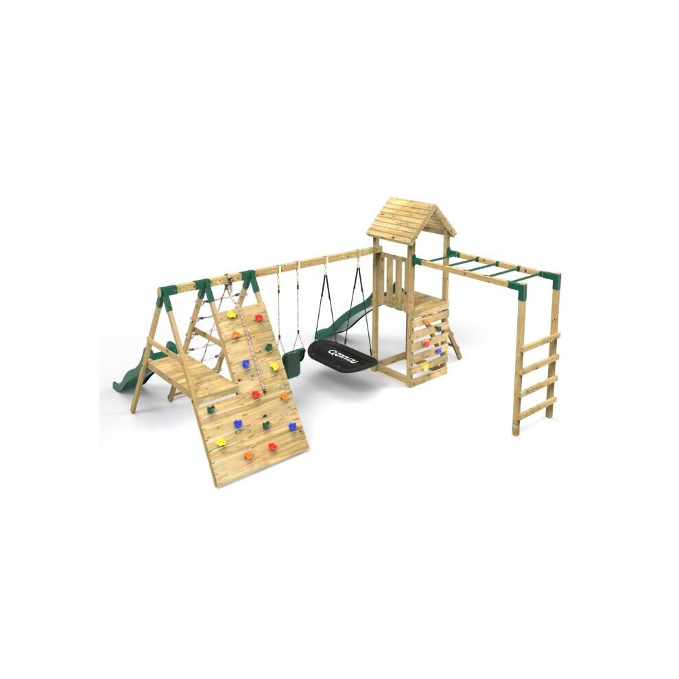 (Greenhorn) Rebo Challenge Wooden Climbing Frame with Swings, Slide and Up & Over Climbing Wall