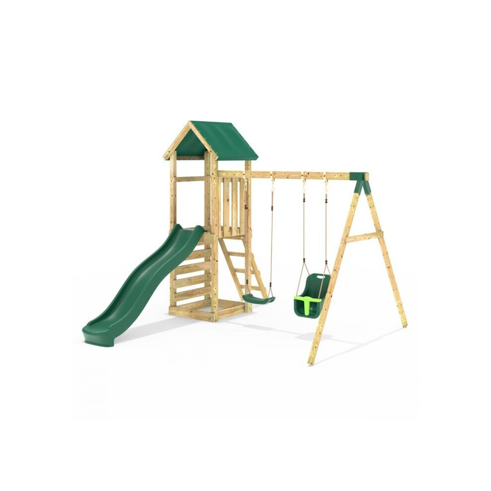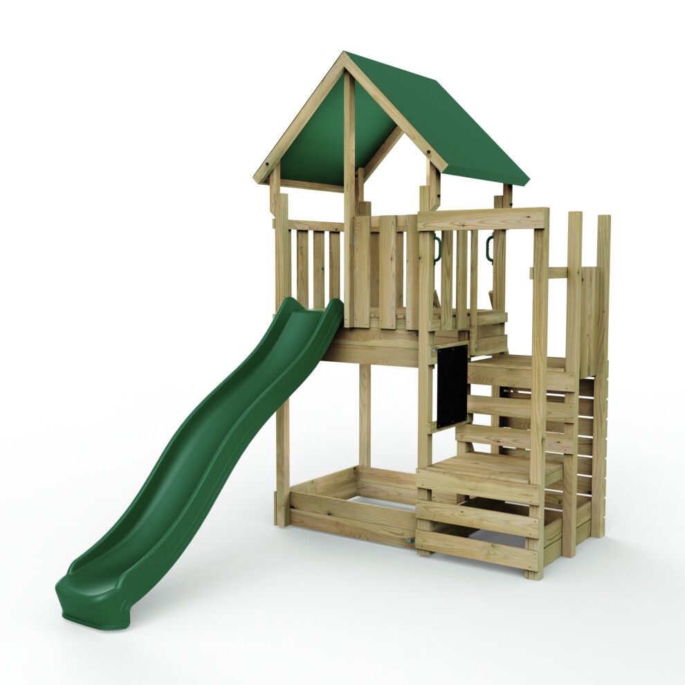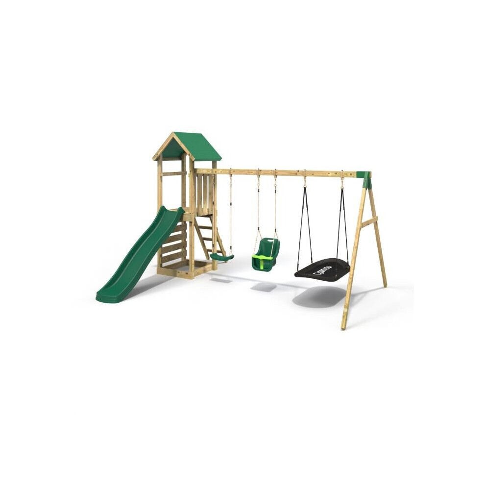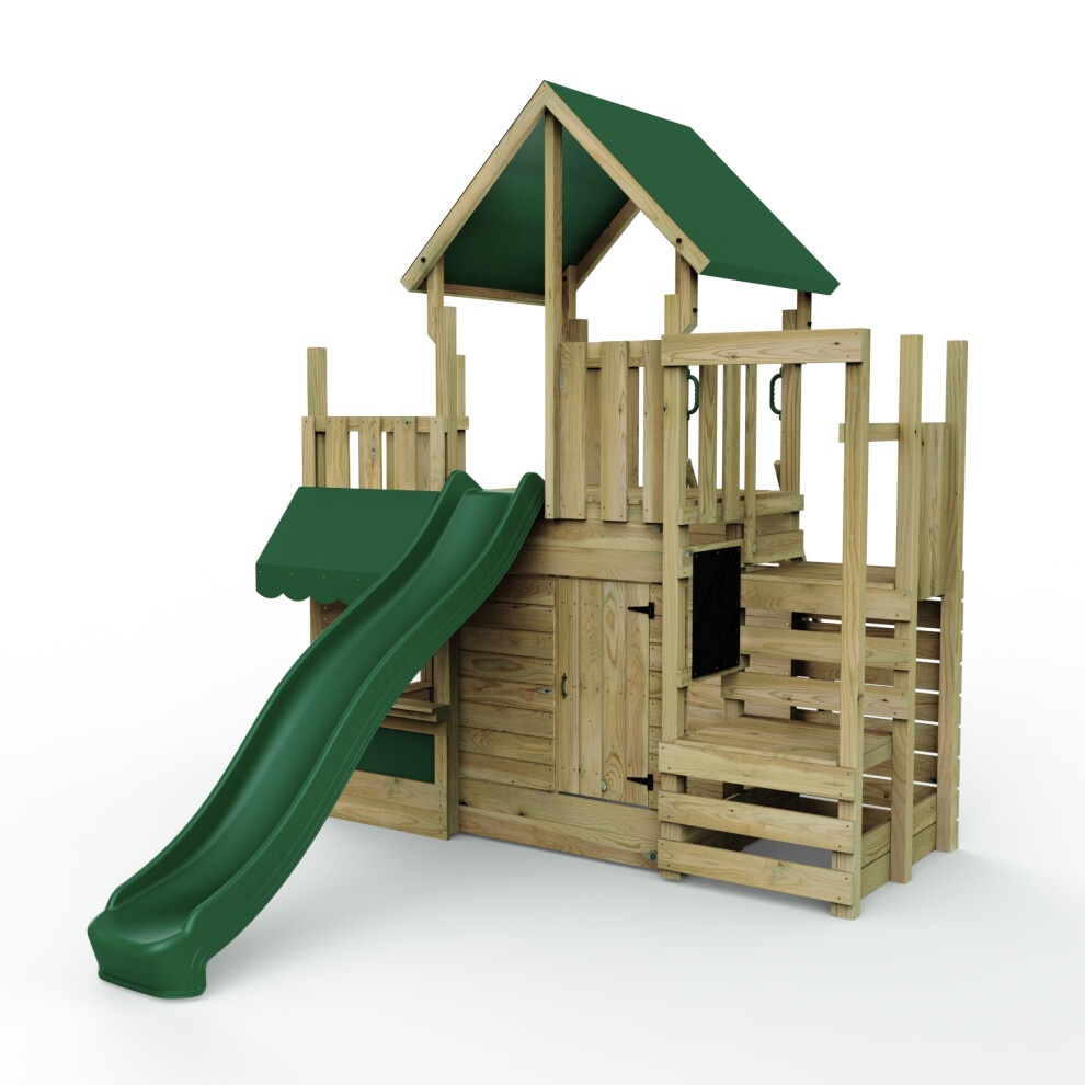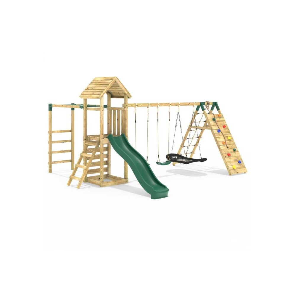 Rebo® Wooden Climbing Frame with Swings, 6 and 8ft Slides and Climbing Wall - Crestone Green | OutdoorToys | Pressure Treated Timber, Sturdy Wooden Construction