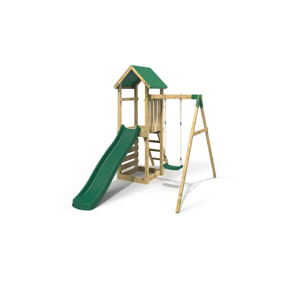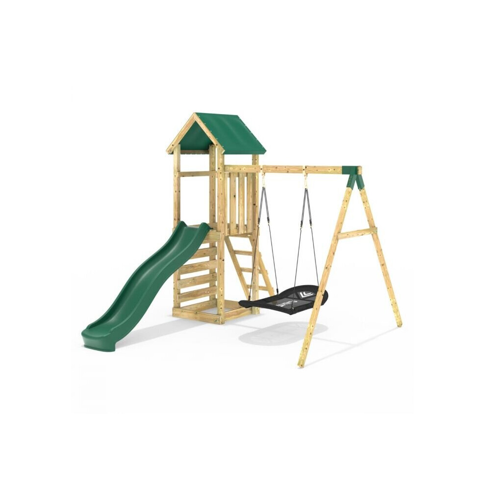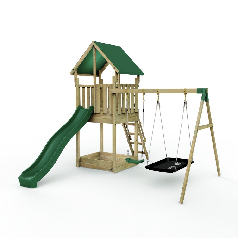 Rebo® PolarPlay Kids Climbing Tower and Playhouse - Swing Haldor Green | OutdoorToys | Wooden Climbing Frame and Wendy House with Climbing Wall, Slide and Sandpit