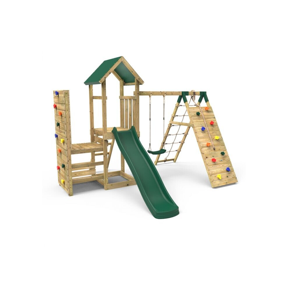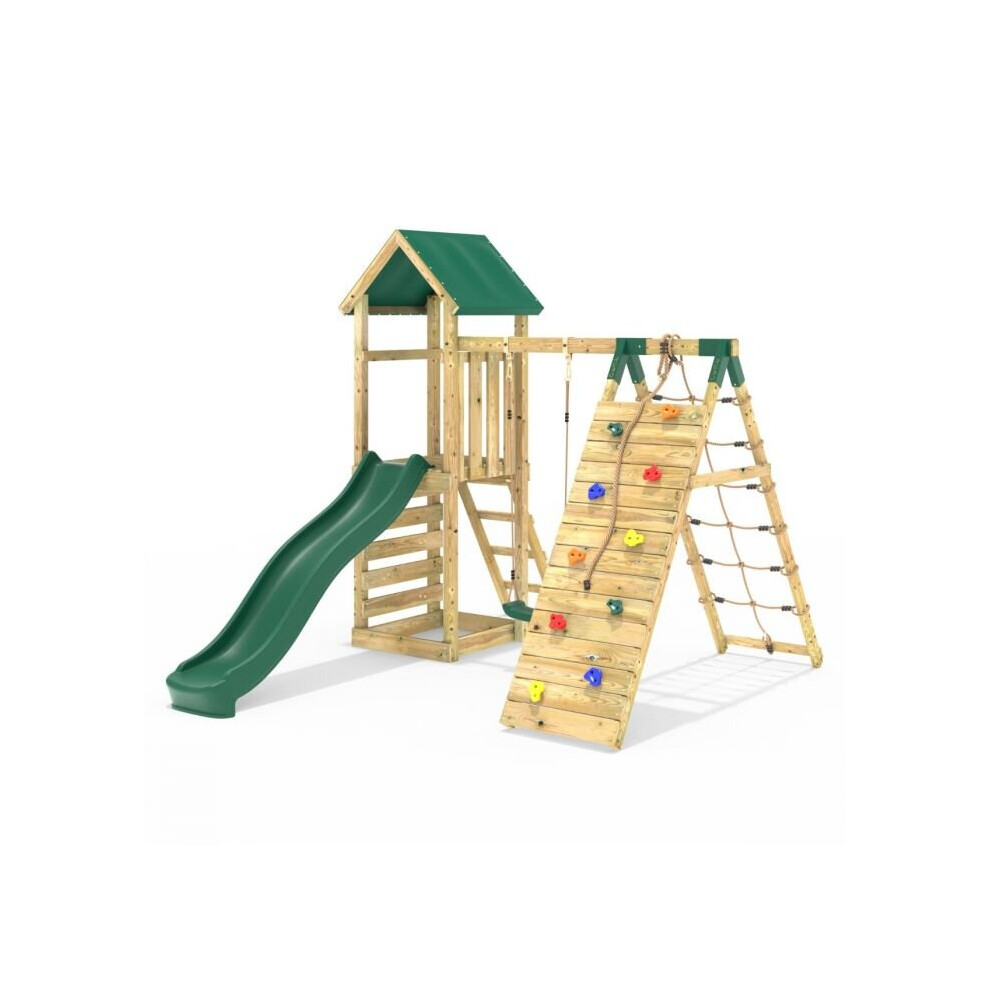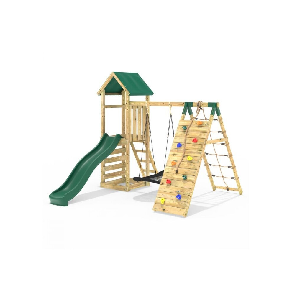 (Cairngorm+) Rebo Wooden Climbing Frame with Vertical Rock Wall, Swing Set and Slides