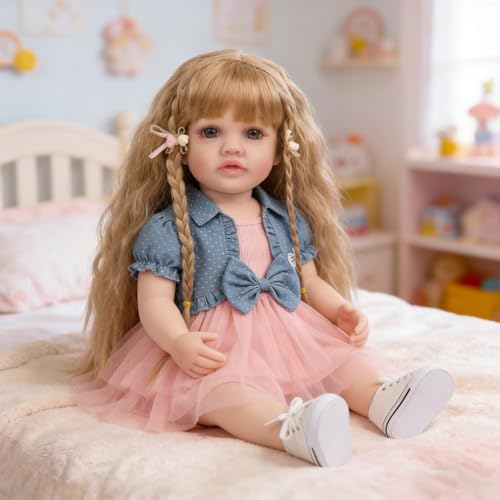 ROSHUAN 26 Inch Large Size Reborn Baby Dolls, Realistic Reborn Toddler Dolls Girl With Blonde Hair, Lifelike Toddler Baby Doll Weighted Soft Cloth Body For Kids Gifts