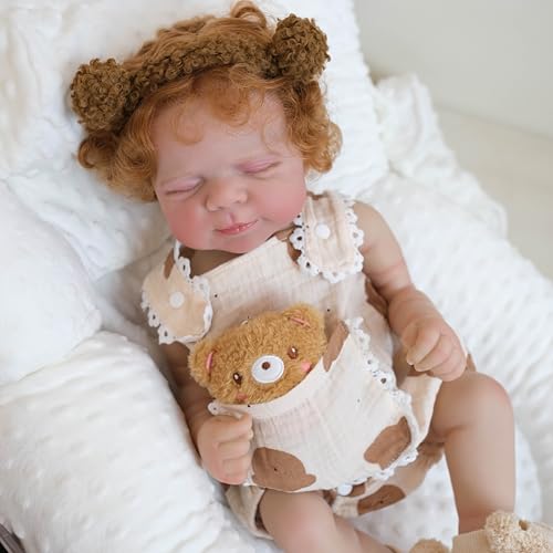 iCradle Reborn Dolls Reborn Cloth Body Girl Realistic Reborn Baby 45CM Lifelike Weighted Reborn Doll,Implant Red Curly Hair Age 3+