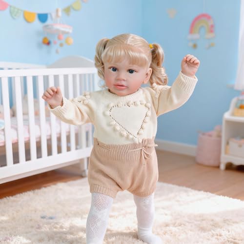 iCradle Reborn Dolls Reborn Toddler Dolls Girl Real Life Baby 26 Inch Lifelike Weighted Reborn Baby Implant Blond Hair Cloth Body Set For Kids Age 3+