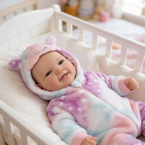 iCradle 17inches Reborn Dolls 43cm, Reborn Baby Dolls Realistic Baby Doll - Real Life Babies with Teeth -Hand Drawing Hair For Kids Age 3+