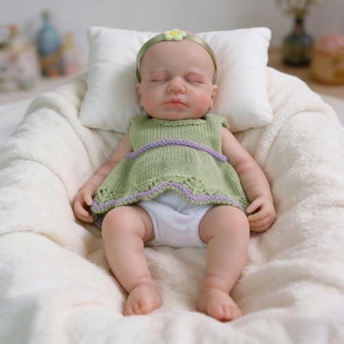 iCradle Green Sweater Reborn Dolls Reborn Baby Dolls, 12 Inch 30 cm Realistic -Sleeping Newborn Baby Dolls, Full Solid Silicone Girl Reborn Washable Girl Doll for Ages 3+
