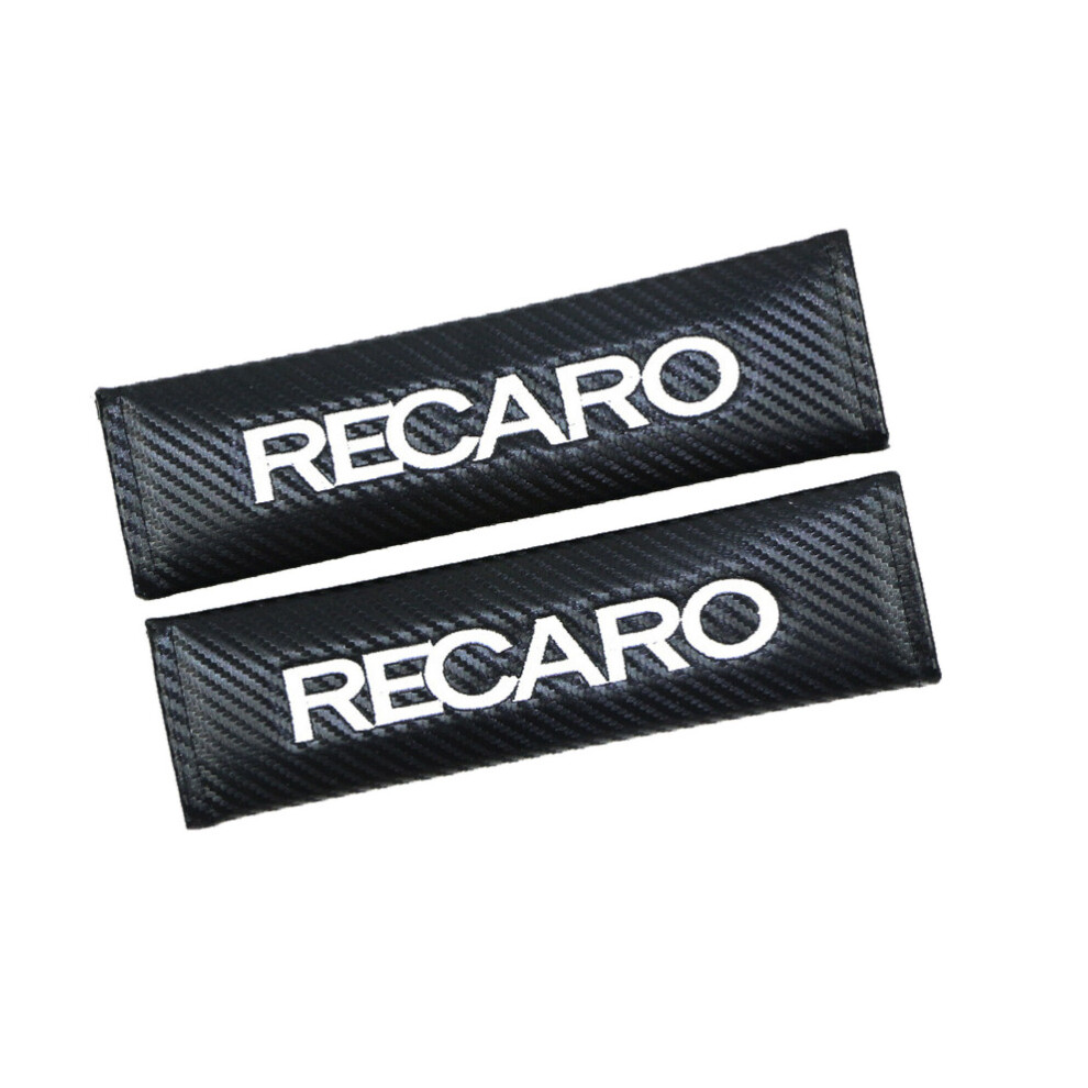 2pcs Recaro Logo Carbon Fiber Style Leather Seat Belt Shoulder Pad