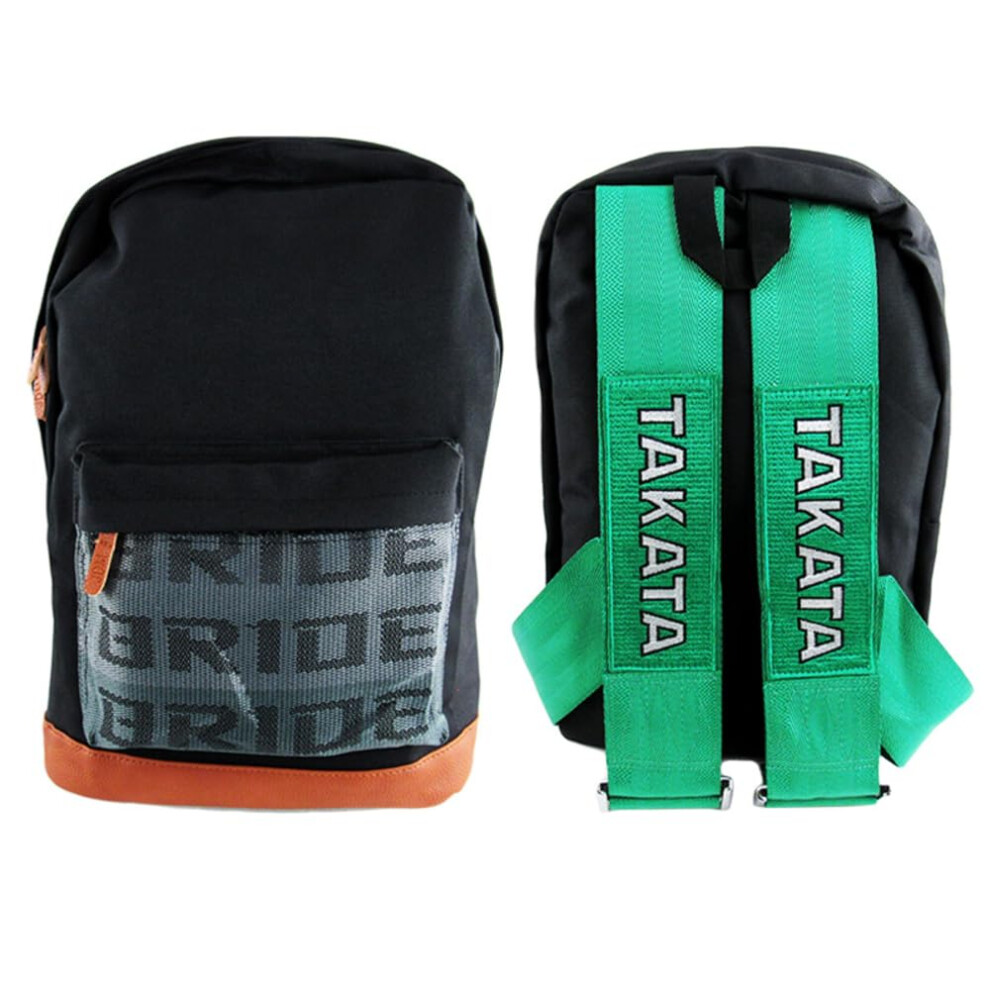 JDM Bride Recaro Racing Laptop Travel Backpack Brown Bottom with Adjustable Harness Straps (Bride Greeb TAK Strap)