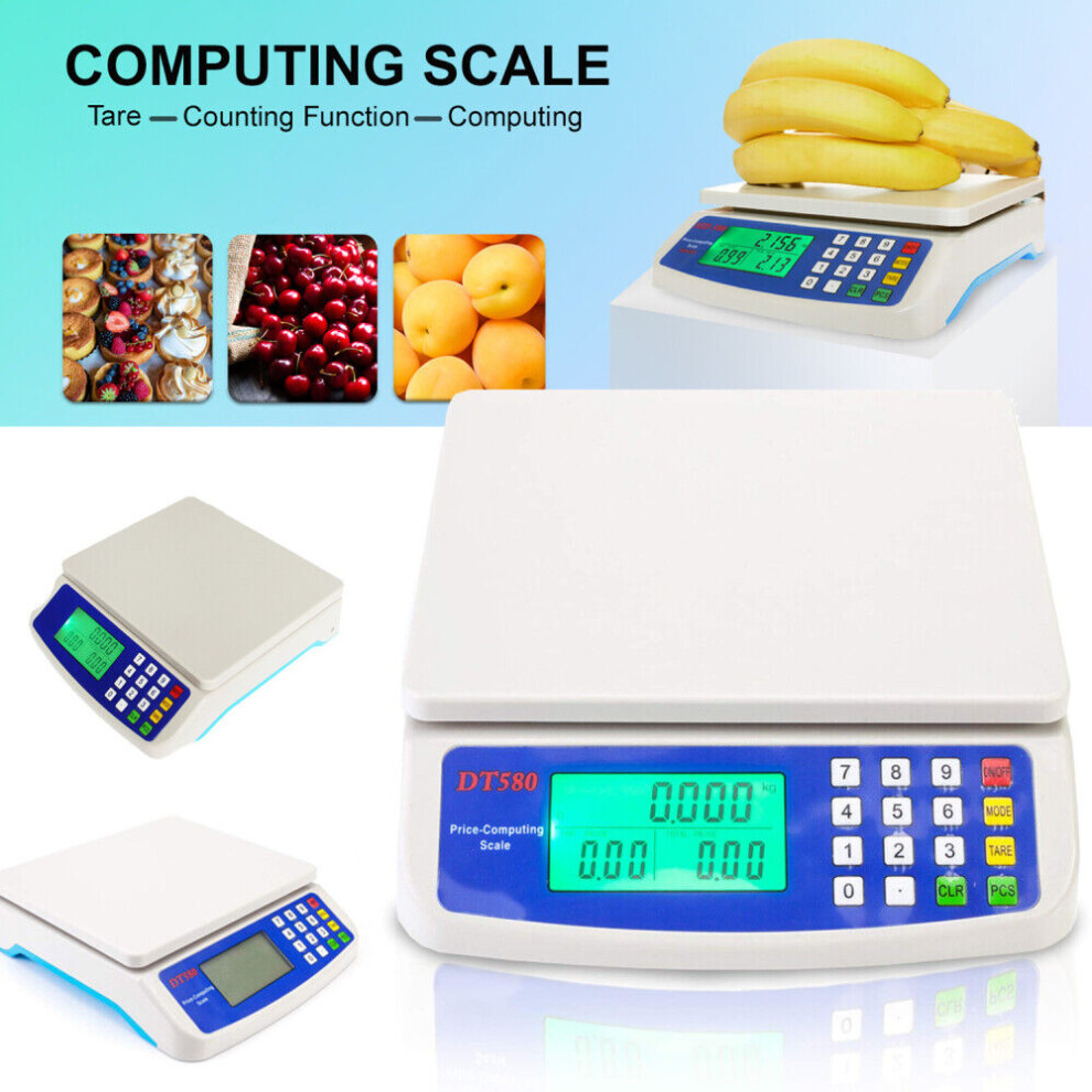 LCD Digital Commercial Food Scale, Durable & Portable Construction & Rechargeable Battery & AC Adapter, Dual Bright LED Display for Easy Reading In An
