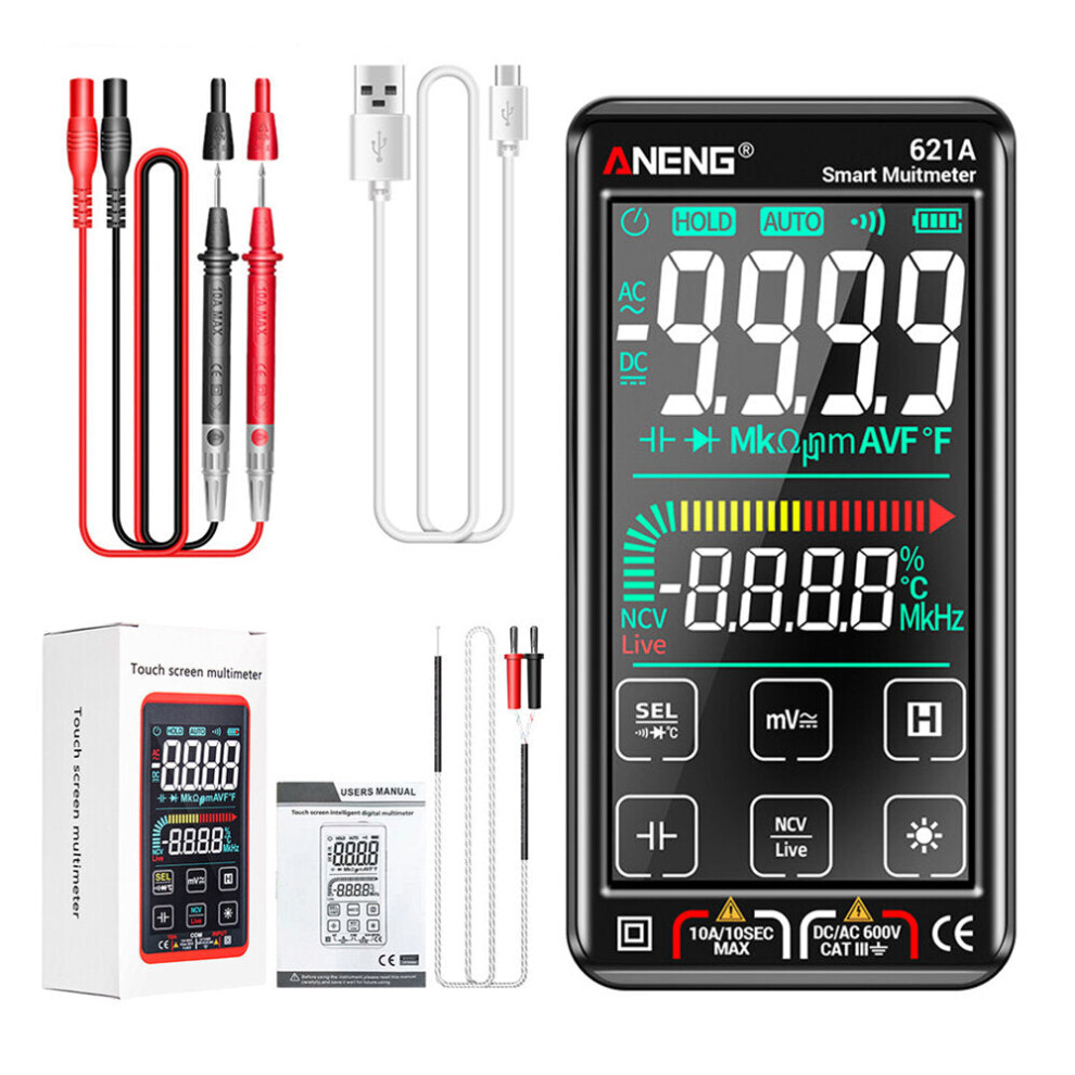 (Black) 9999 Counts Auto Range Full-screen Touch Smart Digital Multimeter Rechargeable DC/AC Voltage Current Tester Meter