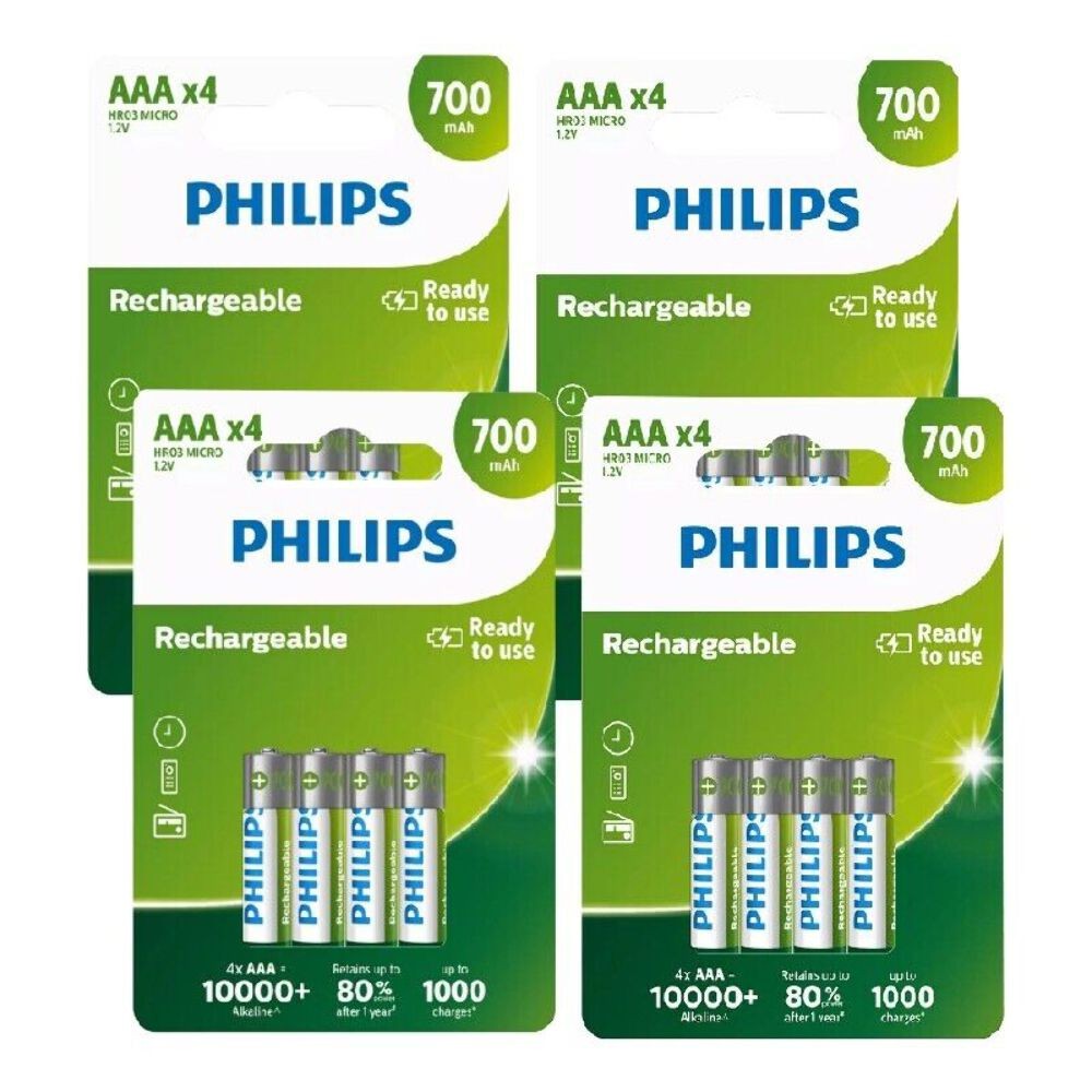 4, NiMH, AAA (LR03/R3), Rechargeable batteries