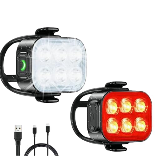 Rechargeable Bike Lights Set for Front and Rear – Ultra Bright LED Bicycle Lights with 6 Modes, IP65 Waterproof, Long Battery Life, Easy Install – Road & Mountain Bike Headlight and Taillight