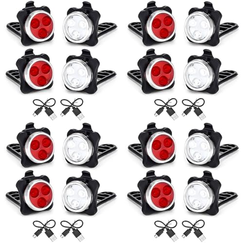 Yoeruers USB Rechargeable Bike Lights Set Head Light (White Light) &Tail Light (LED Red Light) for Road Bicycle Accessories,8 Set