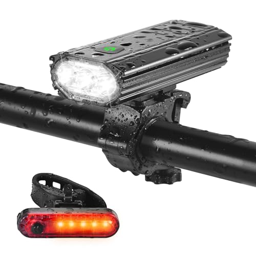 Bike Lights Front and Back, Super Bright 6 Light Modes Bicycle Lights IP65 Waterproof Cycle Lights, Easy To Install 3000 Lumens USB Rechargeable Mountain Bike Lights For Riding