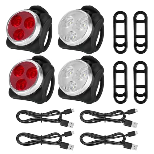 Bike Light Set, USB Rechargeable Bike Lights Front and Back Ultra Bright Cycling Headlight Front and Rear Taillight Light with Cables Waterproof LED for Road Mountain Day Night Cycling Safety(4Pcs)