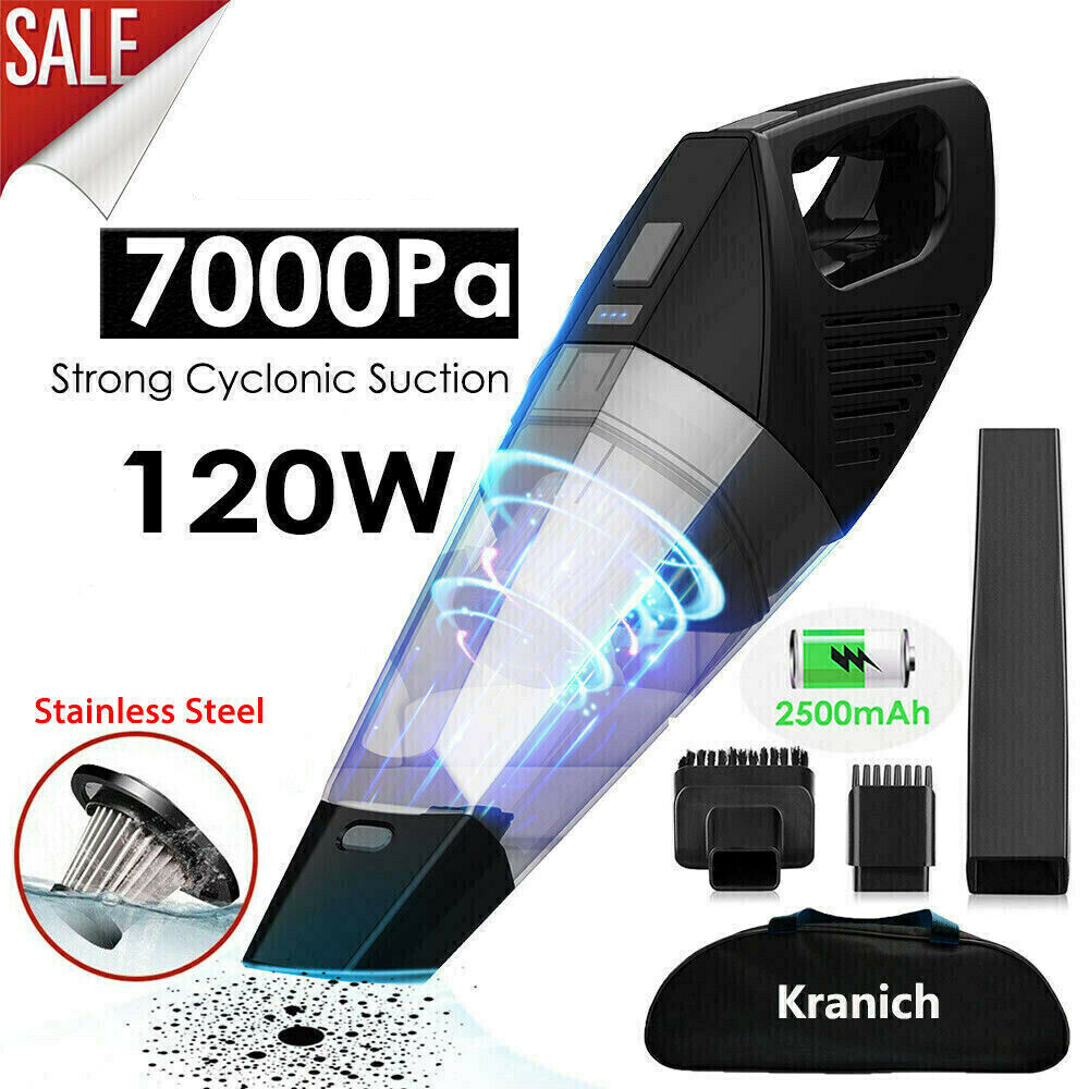 7000PA Car Vacuum Cleaner Rechargeable Cordless Handheld Bagless Wet & Dry Vac